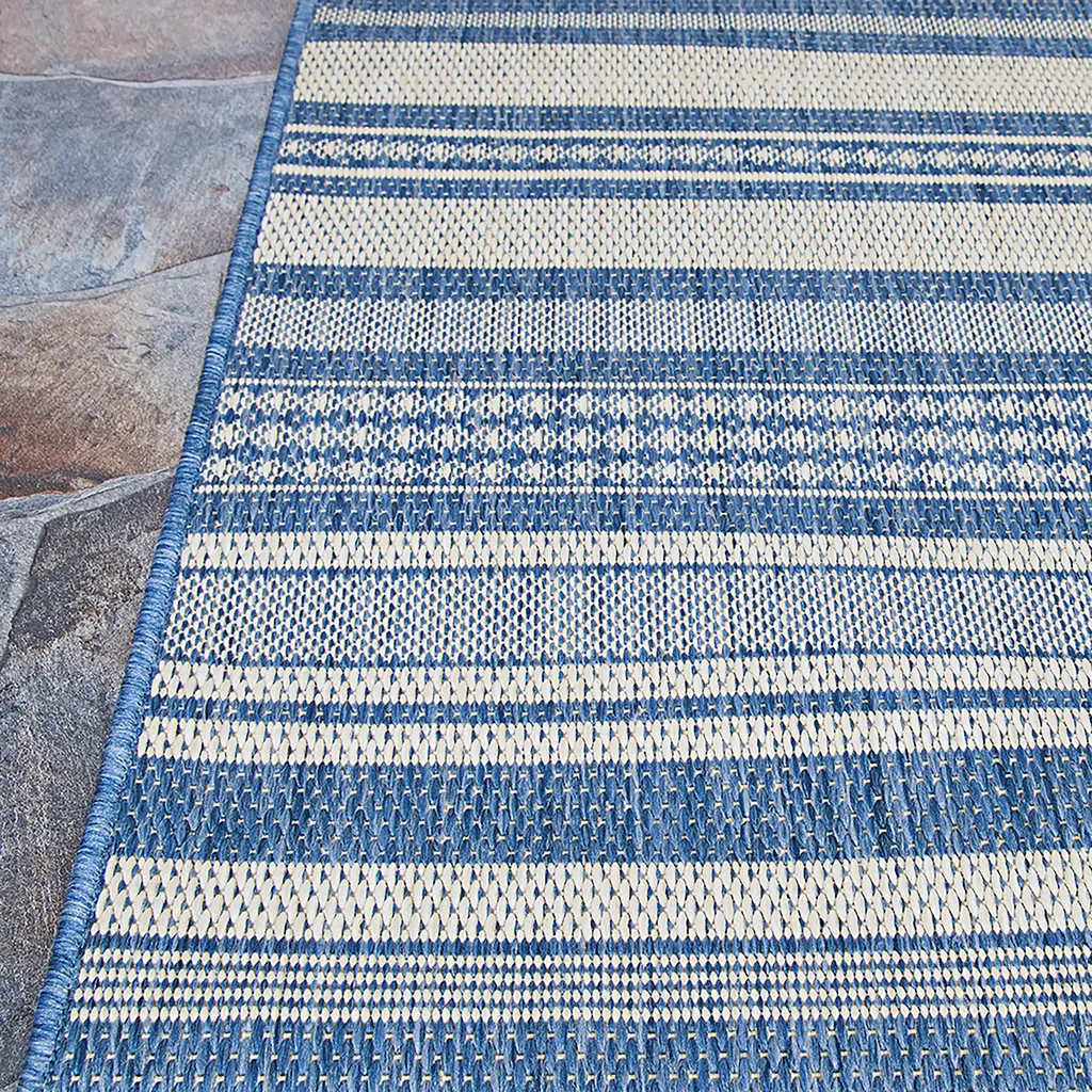 Our all-weather Veranda Striped Rug is distinctively designed to complement the classic styling of outdoor furniture while adding warmth to stone entryways and patio decks. Power-loomed of 100% fiber-enhanced Courtron™ polypropylene, this all-weather, pet-friendly area rug is stain, mold and mildew resistant. Flatwoven construction produces a low ⅛" pile allowing it to lie flat and clear under most doors. Soft and welcoming underfoot, this indoor/outdoor polypro area rug goes where you need it and looks great, too: kitchen, sun room, porch, patio and more. Sizes are approximate. Imported.