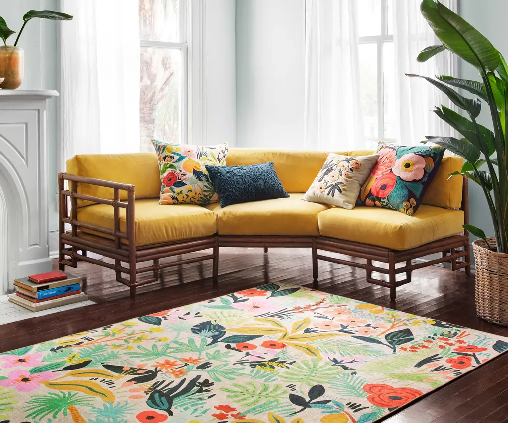 Our Terracotta rug is filled with bold hues and lush blooms and is perfect for adding a tropical touch to your outdoor space (and indoors, too!). This rug is power-loomed in Turkey from polyester to create bright colors and provide maximum durability that stands up to the elements. Part of our Rifle Paper Co. × Loloi collaboration. The layout and scale of our rugs is adjusted to accommodate each available size, and may be different than what is pictured here. Images of each size are available by hovering over the desired size on our desktop site.