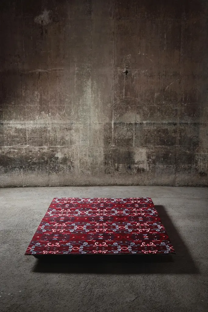 Verdande Red Rug by Volver StudiosDimensions: W 250 x L 350 cm.Materials: Wool and tencel.Available in seven size options: 90 x 240 cm, 140 x 200 cm, 170 x 240 cm, 200 x 300 cm, 250 x 350 cm, 300 x 400 cm, and 350 x 450 cm. Also available in custom measurements. Prices may vary. Please contact us.Volver is a Norwegian design studio that offers curated collections of premium rugs for private and public spaces. Volver aims to enrich the notion of Scandinavian design with a vibrant diversity of artistic and individual expressions.Originally from Tallinn, Estonia, born and raised in an artist home, Ksenia Stanishevski studied industrial design at the School of Architecture and Design in Oslo, Norway and The University of Newcastle, Australia.By starting Volver in 2018, Ksenia’s design objective has been to bring individual artistry and creativity into our environments, be it home or work. “Inspiring expression” in each of her clients and each project has been a fundamental element in her work. Pushing the limits between art, design, and handcraft, Ksenia constantly experiments and dares to confront stereotypes of what rug is, what art is, and what textile is, and is working with scales from micro to macro, pushing the possibilities of available technology and traditional handcraft.