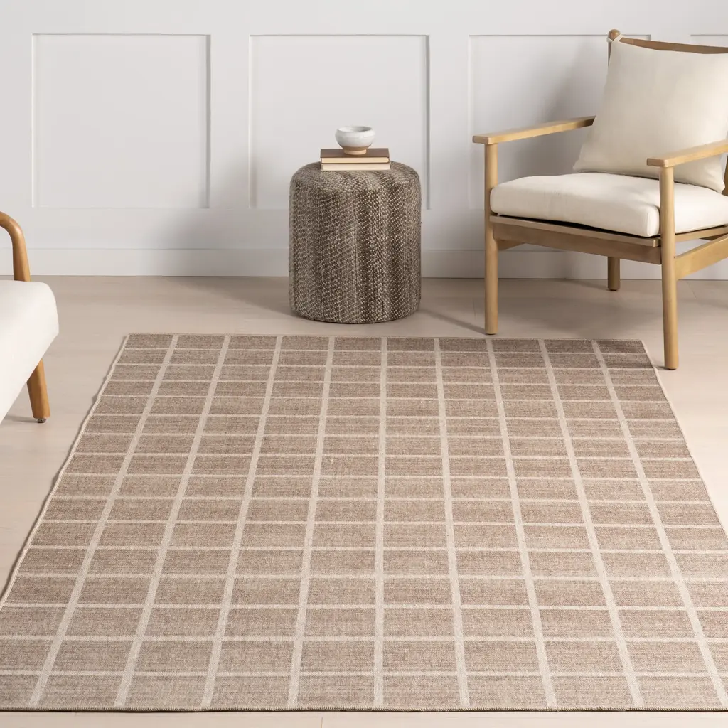Verity Checkered Washable Rug | Brown - 8' 6" X 11' 6"