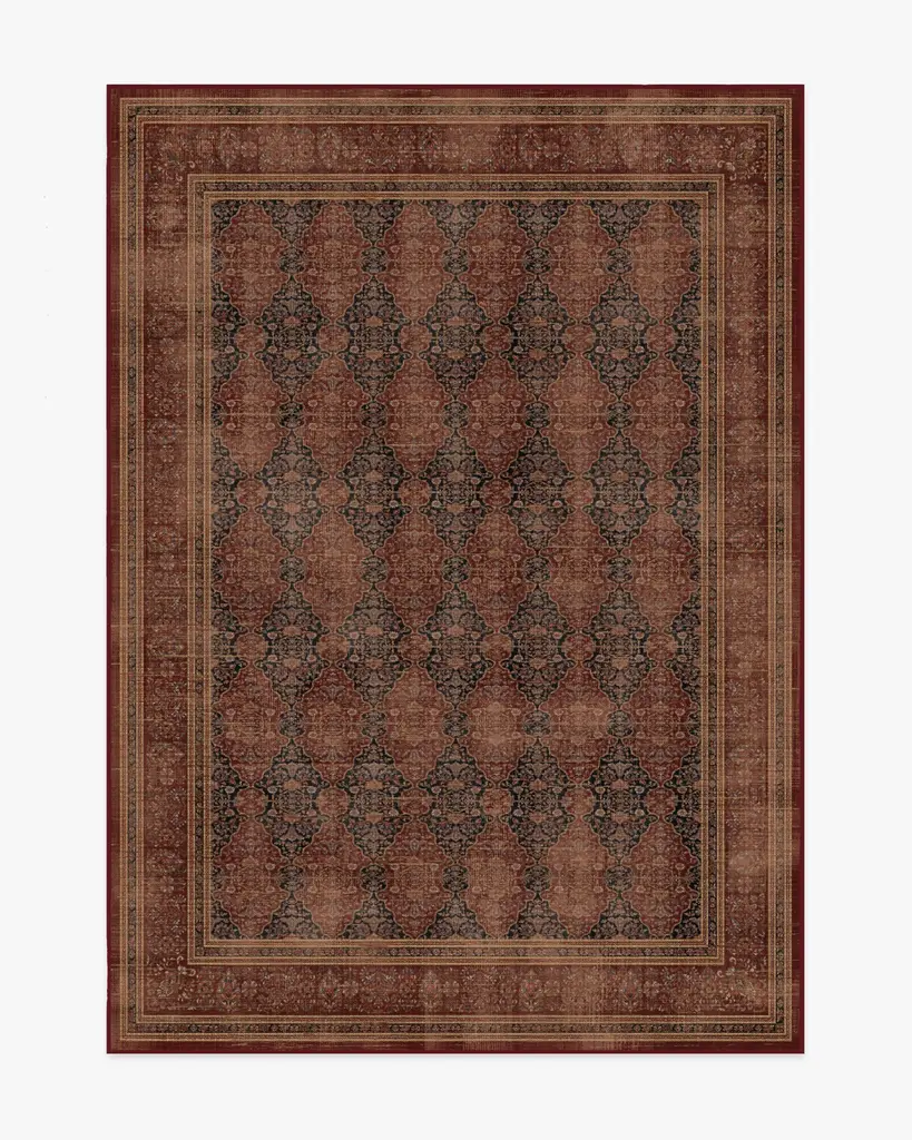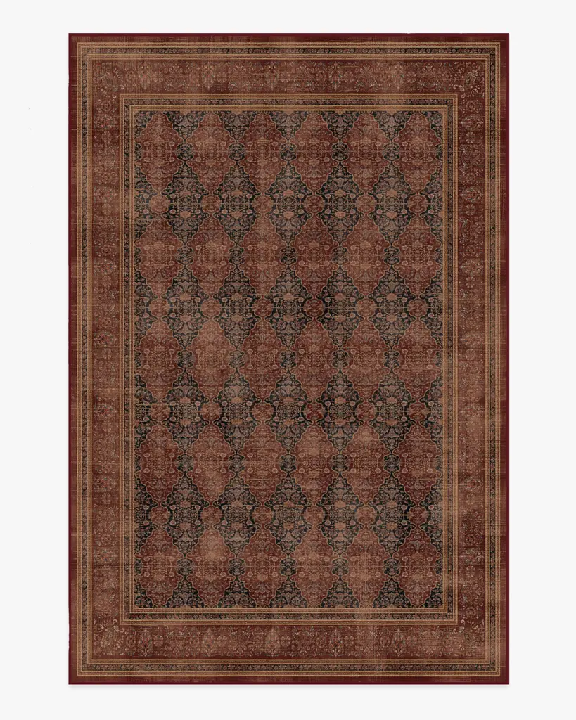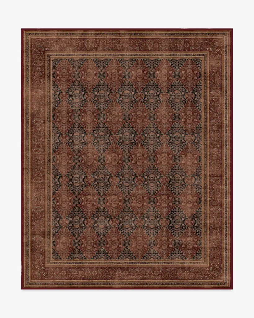 Tailored. Transitional. Timeless. Inspired by the allure of dark academia and the whimsicality of florals, our Vesper Amber Red Rug features interlocking antique motifs in deep ink and rich amber red. It strikes a perfect balance between sophistication and livability, bringing a touch of literary inspiration into your home. Water-resistant, stain-resistant, and machine-washable. Rug colors may vary slightly according to your device and the lighting in your space.