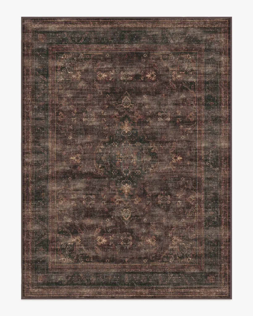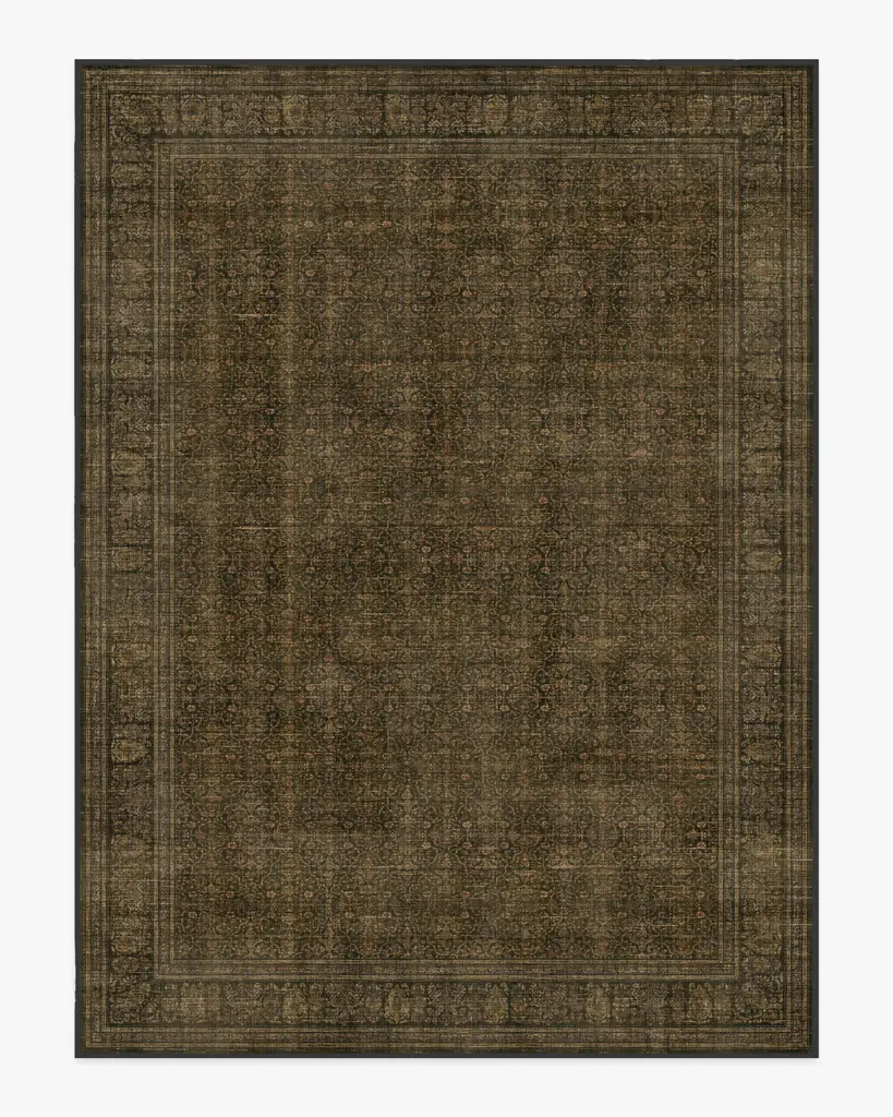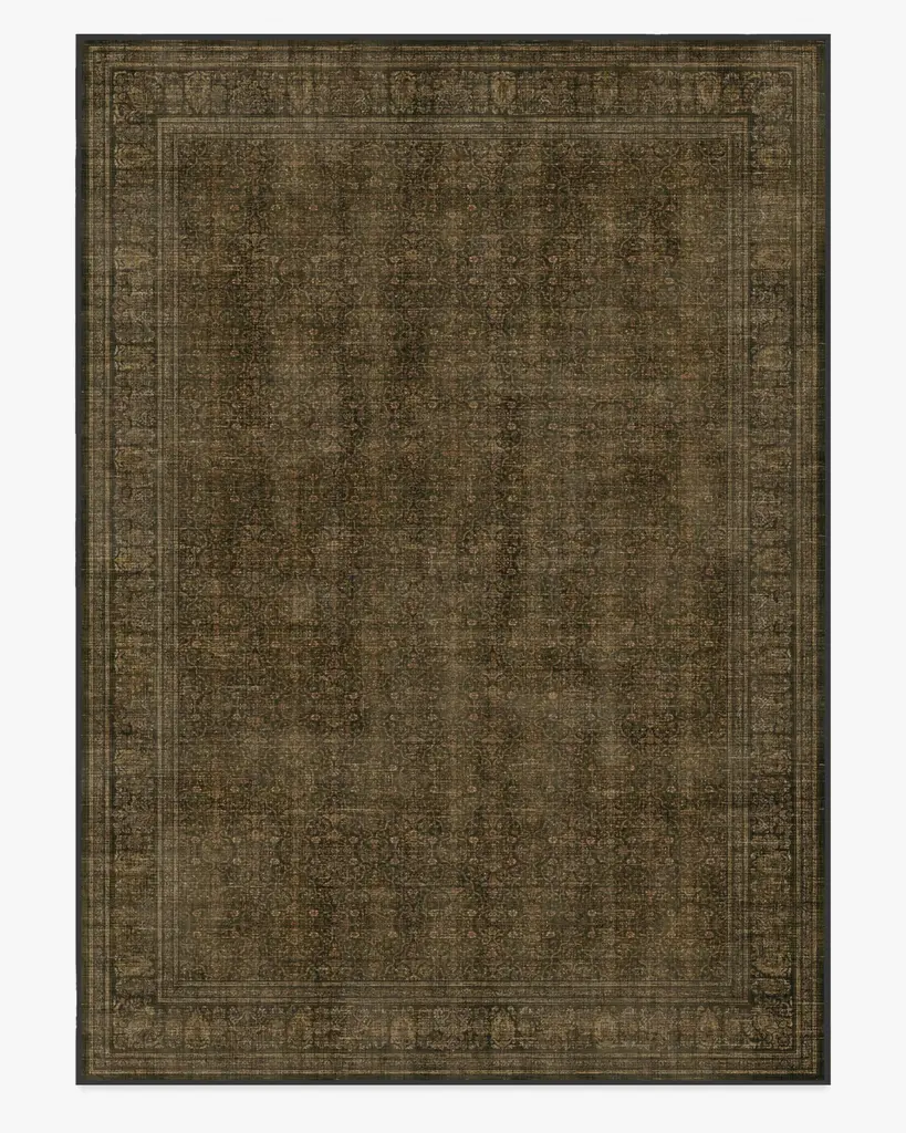 Tailored. Transitional. Timeless. Inspired by the allure of dark academia and the whimsicality of florals, our Vesper Olive & Gold Rug features interlocking antique motifs in olive and ochre. Blending together natural, earthy hues like rich brown and gold with a classic regal feel, it strikes a perfect balance between sophistication and livability. Water-resistant, stain-resistant, and machine-washable. Rug colors may vary slightly according to your device and the lighting in your space.