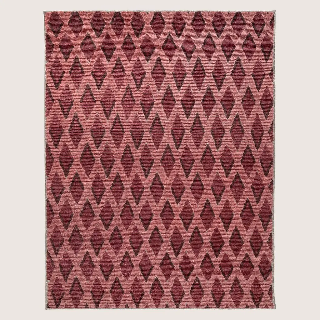 Joy. Wellbeing. The feel of soft wool beneath your feet. This handknotted, diamond-patterned, RWS-certified shag rug brings true comfort wherever it lays.