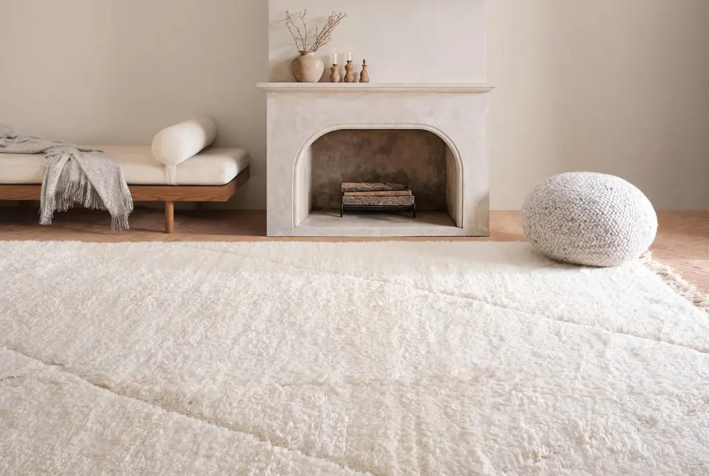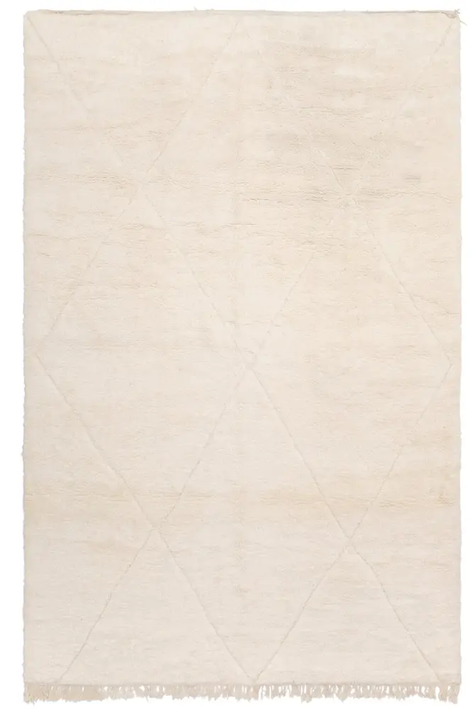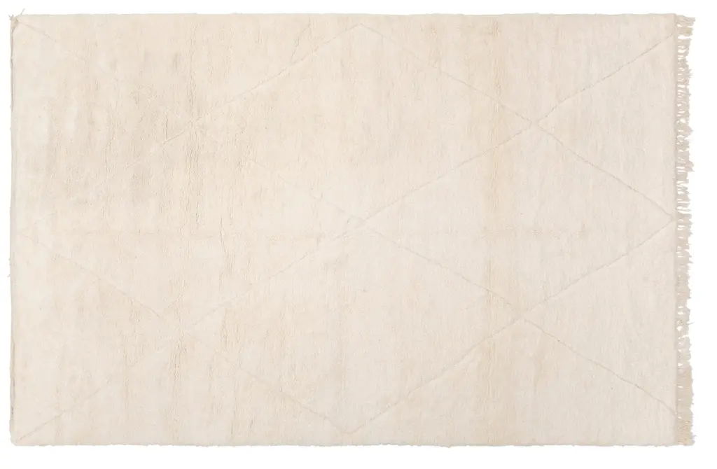 One-of-a-kind new rug, hand-knotted near the small city of Boujad in the Chaouia-Ouardigha region of Morocco. Natural inconsistencies are inherent in these unique, handcrafted rugs