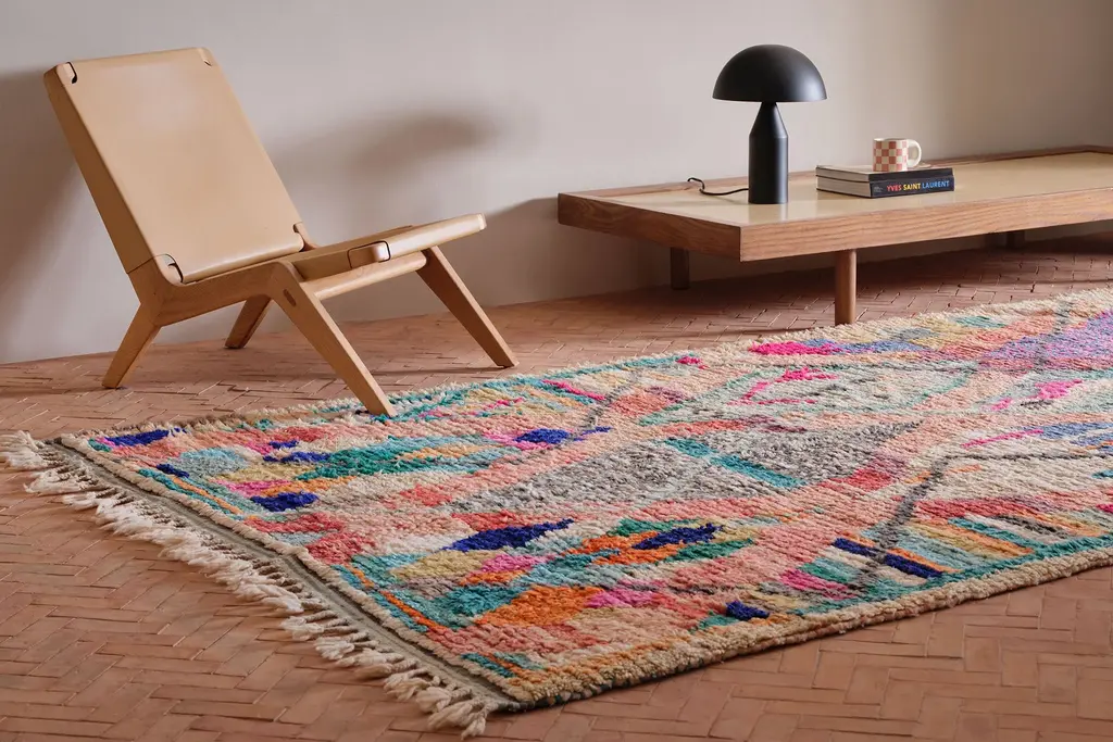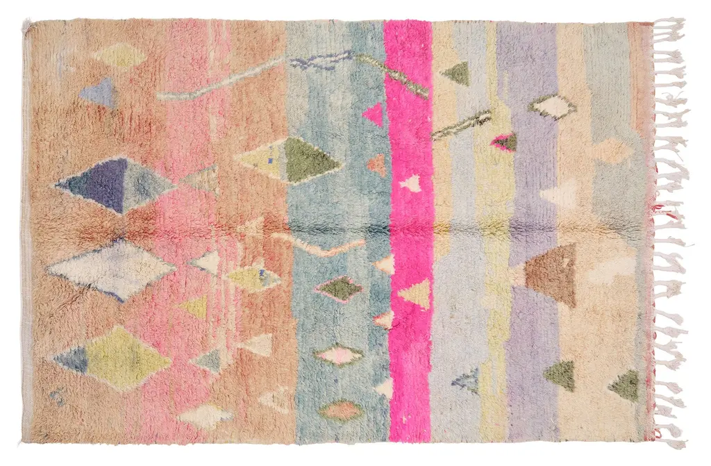 Our Moroccan pieces are each one-of-a-kind. Much of our collection was woven between 30 and 100 years ago, and curated by us. Other rugs in our collection are fresh off the loom and made with traditional techniques. Moroccan rugs don’t come with a key. As with any painting or poem, their motifs have many subjective interpretations. Originally made for personal use, these rugs took months to weave, documenting a shifting tide of events and emotions in the weaver’s life.