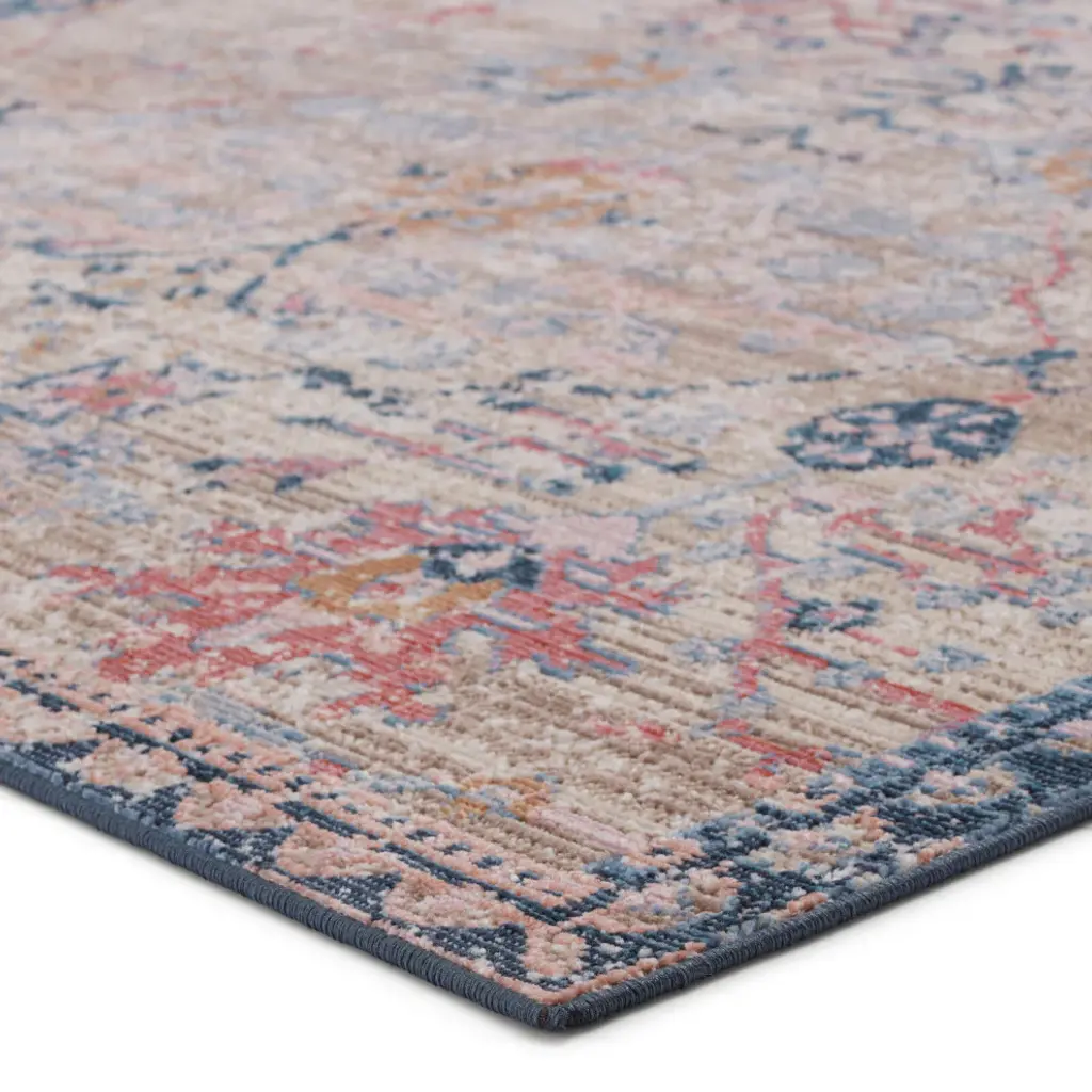 Bringing to life an enchanting and truly captivating style, the Swoon collection boasts whimsical color combinations that are vibrant and inspired by traditional Turkish textiles that have been aged in the sun for a faded and timeless look. The Elva design features grounding hues of blue, pink, gold, beige, and gray for a rich colorway. Crafted of a soft and low-profile polyester/polypropylene blend, this performance-driven rug is perfect for homes with pets and kids or as a durable accent in outdoor seating areas.High-Performance Style: this indoor/outdoor rug is specifically designed to tolerate outdoor elements and heavy trafficWeather-Resistant Durability: made of 100% polypropylene to maximize durability in high-traffic and outdoor areasLow Pile: 0.17 inch pile with ribbed texture emulates handmade qualityCare and Cleaning: Clean or remove stains by using mild soap. Rinse with clean water or a garden hose. Hang and allow rug to dry before laying rug out. Vacuum regularly with beater bar off for indoor use.Rug Pad Recommended: allow maximum air flow and additional cushioning with an outdoor rug pad