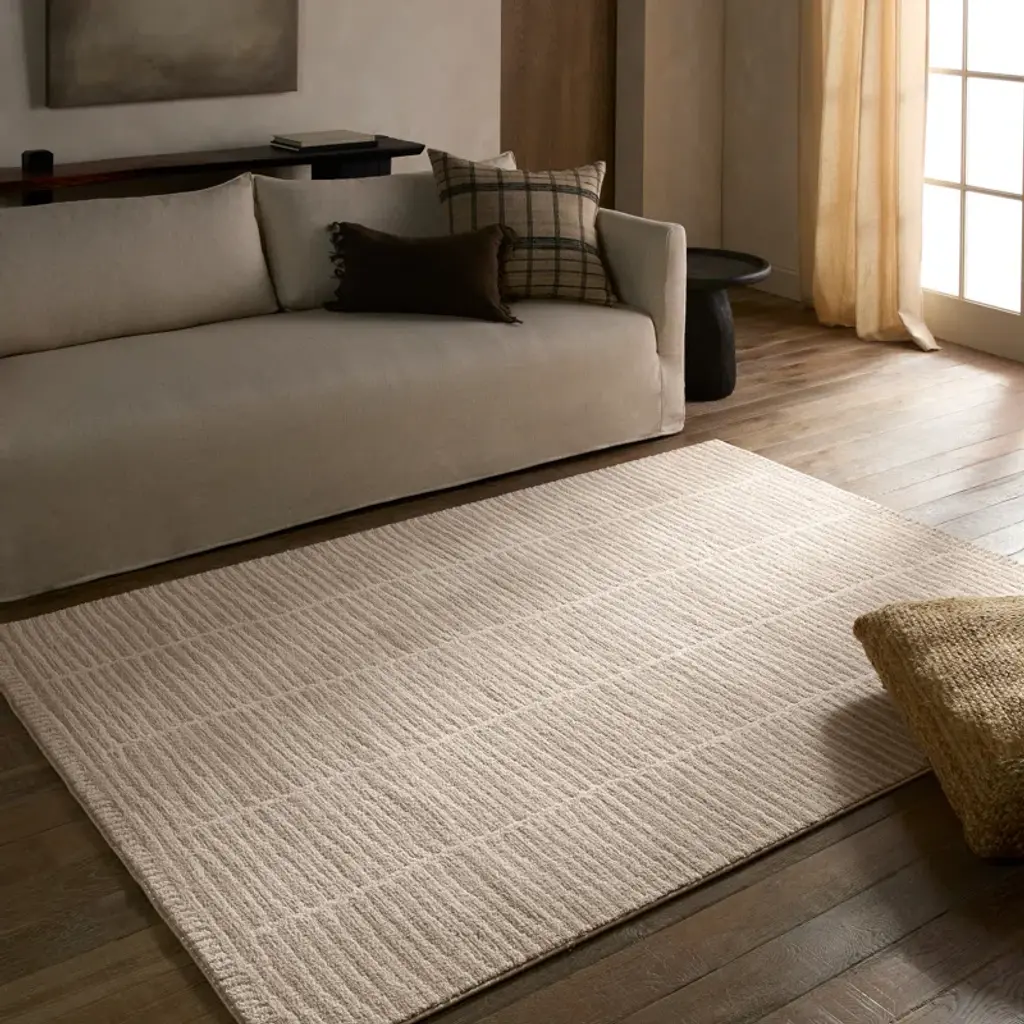Add visual interest to any medium-traffic space with the Loehrke collection. A modern geometric design with tonal light beige and dark beige hues offer a simple color mix that adapts to any aesthetic and matches with any mood. Polyester is powerloomed with variegated yarn to look like wool—without the price tag.