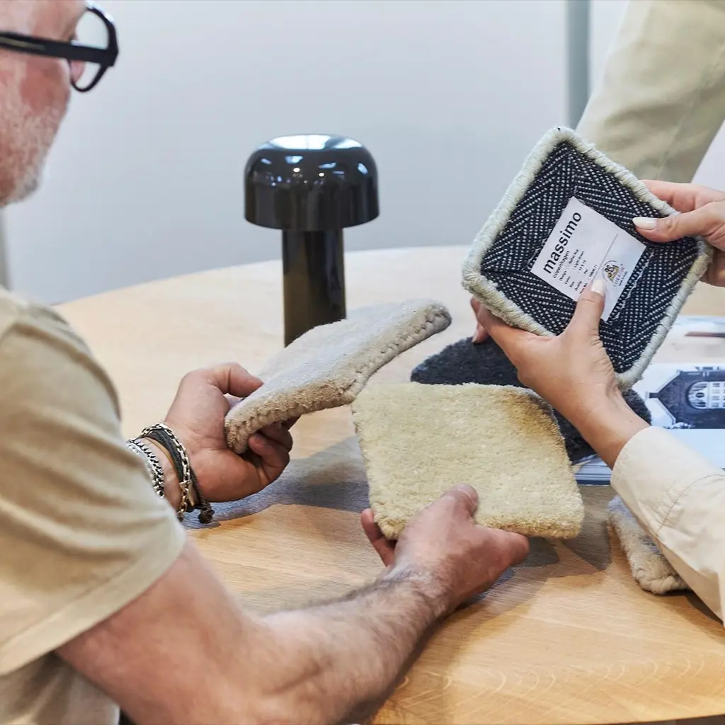 Vibrant Blue Earth Bamboo Carpet by Massimo CopenhagenHandwovenMaterials: 50% New Zealand Wool, 50% BambooDimensions: W 300 x H 400 cmAvailable colors: Nougat Rose, Cashmere, Soft Grey, Concrete, Warm Grey, Mustard Yellow, Vibrant Blue, Camel, Desert Sand, Terra Cotta, and Charcoal.Other dimensions are available: 140x200 cm, 170x240 cm, 200x300 cm, 250x300 cm, and special sizes.Earth Bamboo combines the softest, most lustrous surface with robustness and durability, making sure that the carpet works perfectly in almost any interior. massimo achieves this by blending soft bamboo fibre with New Zealand wool of the highest quality.By mixing equal parts wool and bamboo fibres, we are able to create a finished rug with an exceptional level of sturdiness, protecting the rug against wear and tear and pressure marks, without sacrificing on the luxurious look and feel.Handwoven – 50% Bamboo – 50% New Zealand WoolOUR STORYWe believe that any interior can be elevated with uplifting colours and pleasant textures. At massimo we do it one rug at a time and with the greatest of attention to design, quality, sustainability – and you.Because all great results start with dialogue, quality and empathy. For more than 20 years massimo has focused on creating handmade rugs for both private homes, public spaces as well as developers.We approach every inquiry with the same attention and curiosity, whether the best solution is one of our signature quality rugs always on stock or a one-of-a kind bespoke rug designed and made especially for the occasion.We cannot and we will not deny our Scandinavian origin. We have a passion for subtle, natural colour schemes and long-lasting functional design – but are not afraid to challenge and tempt with a bolder, more colourful alternative.After all, a rug is the soul of a room – and some souls are simply more hot-spirited.