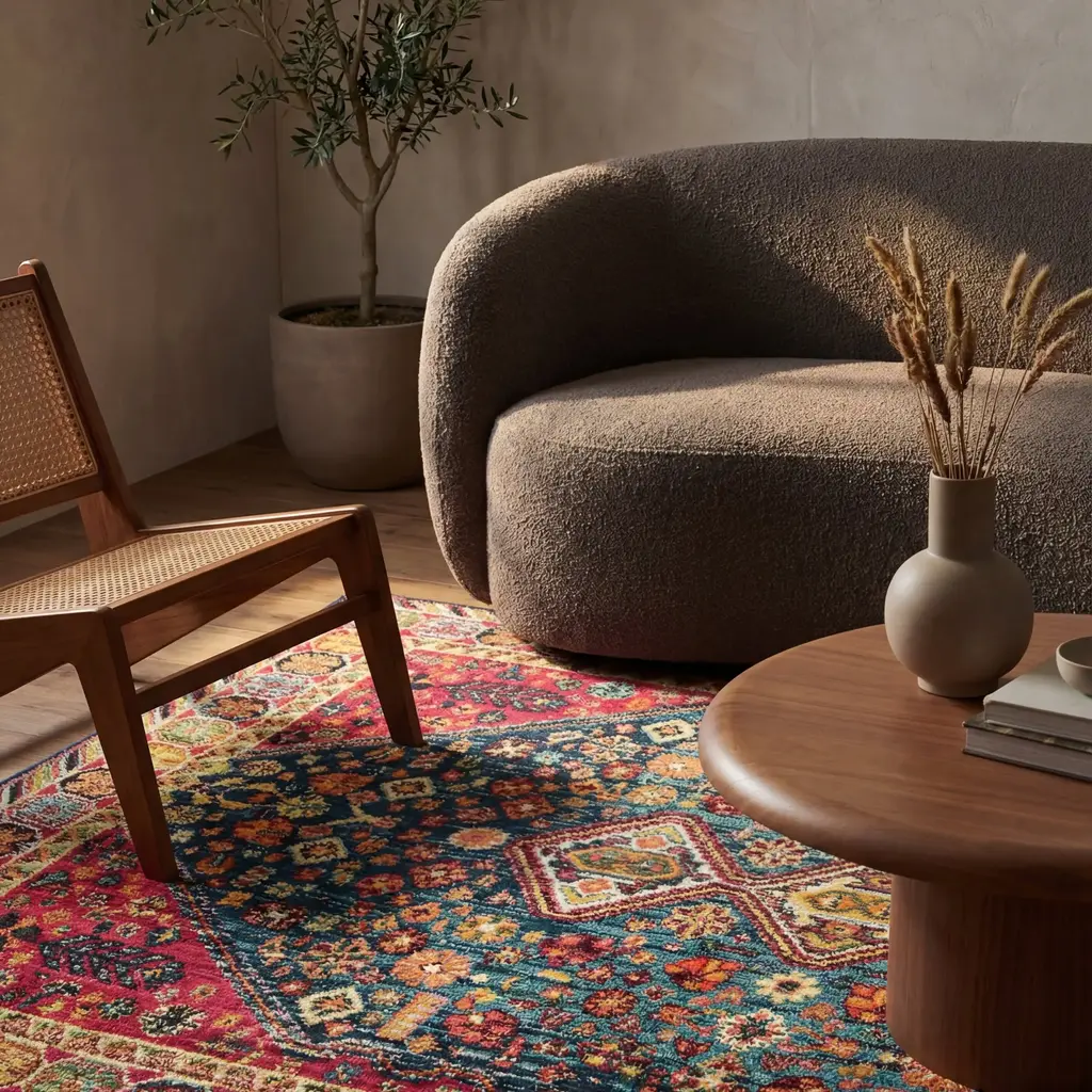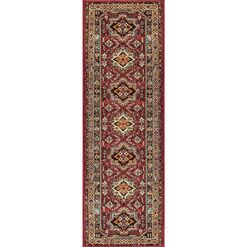 Bring a splash of vibrance and contrasting colors to your living space with the 100% polypropylene, machine-made bohemian rug that is available to you in a variety of sizes and another color. The intricate traditional pattern of this beautiful rug is sure to catch everyone's attention. Each corner of this beautifully designed floor covering features something else that will captivate anyone who sees it. Designed to enhance any room it's placed in, this pet-friendly and easy to clean area rug comes in an assortment of sizes.
