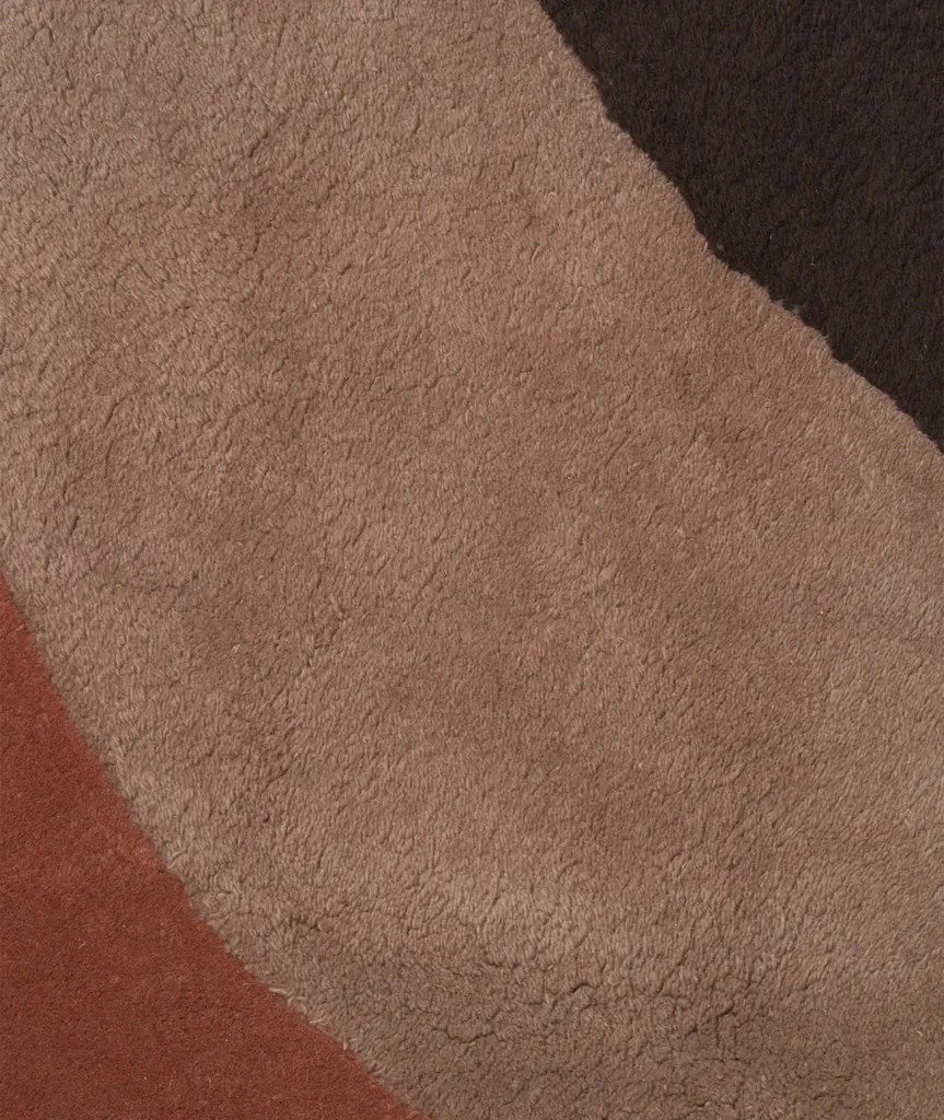 Geometric shapes inspired by an aerial view of Earth — think soft desert dunes and graphic mountain ridges – decorate this plush tufted rug, crafted by hand using the traditional rug-hooking technique. Made from supremely soft, yet durable New Zealand wool, the artistic design is offered in calming tonal beige or rich, earthy red-brown hues, and the contrasting pile height lends depth and dimension to the versatile piece. Fringed trim underscores the artisan feel.