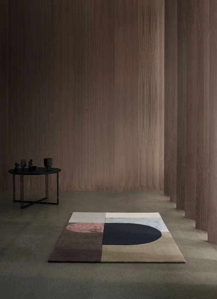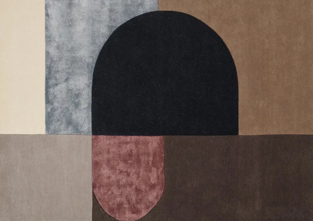 An artistic combination of textures, shapes, and colors, the Vilja Rug (2018) is a striking piece by Copenhagen-based designer Hanne Kortegaard. This hand-tufted rug features the natural warmth and softness of pure wool, plus the silky, lustrous appearance and rich hues of viscose yarn. Made in India.