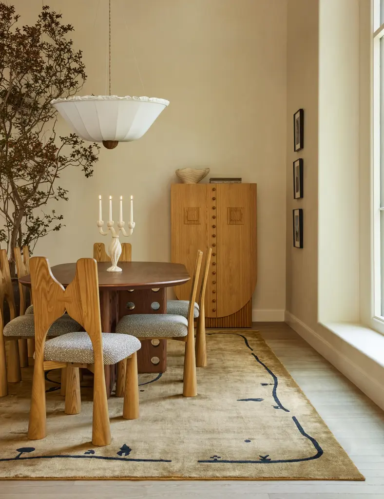 Figurative shapes and sweeping lines mark this hand-loomed rug in a beautiful dark navy color. The rich sheen and artful layout ground your space while layering in graphic detail for a chic edge. This viscose rug is from our exclusive Sarah Sherman Samuel collaboration and features all the trademarks of her warm, edited style.