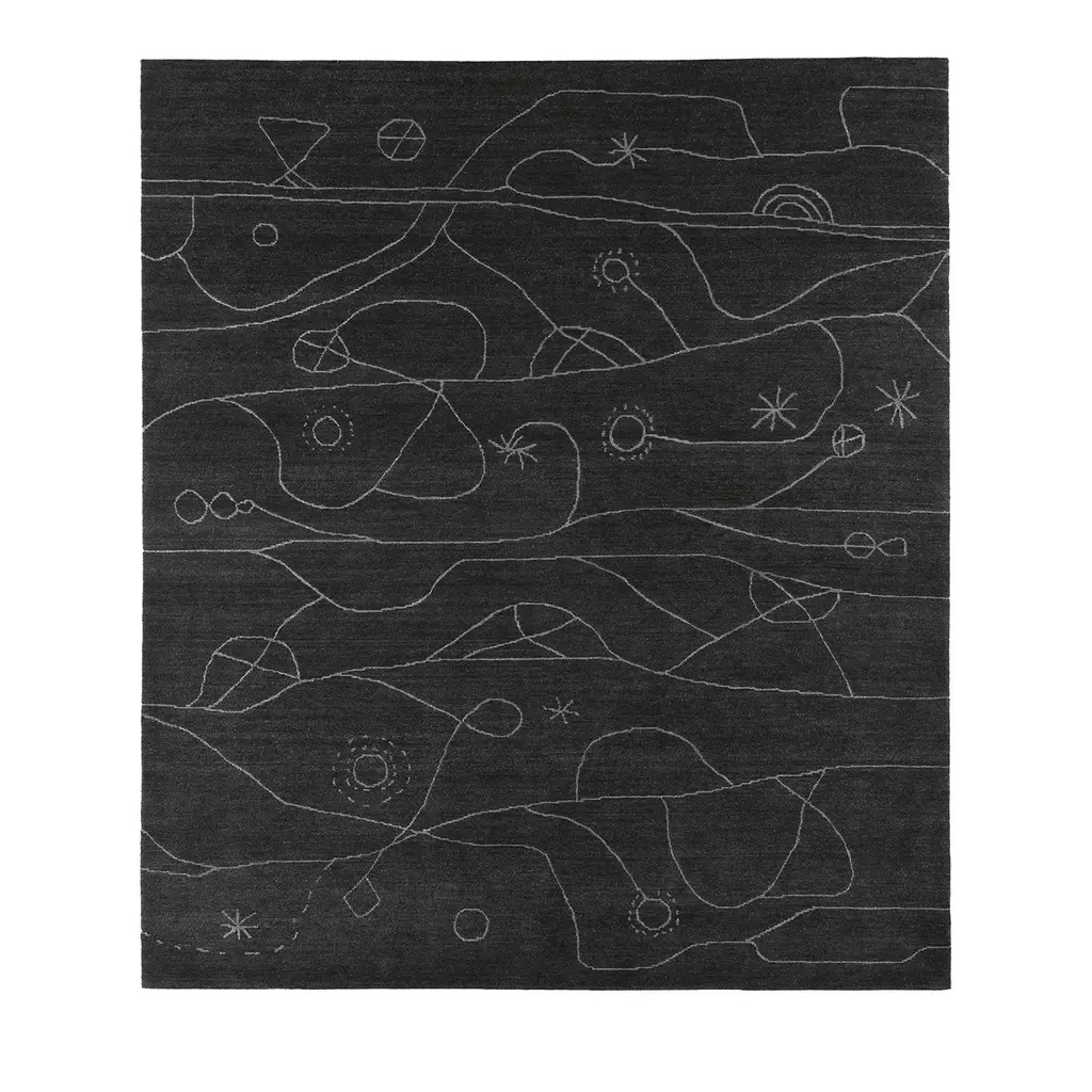 Figurative shapes and sweeping lines mark this hand-loomed rug in a beautiful dark navy color. The rich sheen and artful layout ground your space while layering in graphic detail for a chic edge. This viscose rug is from our exclusive Sarah Sherman Samuel collaboration and features all the trademarks of her warm, edited style.