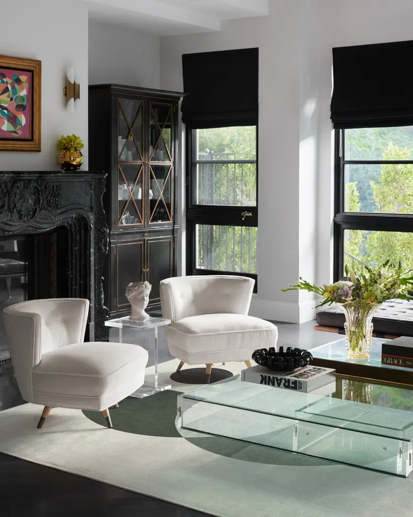 Find balance and harmony in your home. Our Nina Takesh Villette Rug, named after the French village, is inspired by iconic art deco designs and features bold, overlapping geometric shapes. The green color palette transitions from light sage to hunter green on a pearly white background. Water-resistant, stain-resistant, and machine-washable.