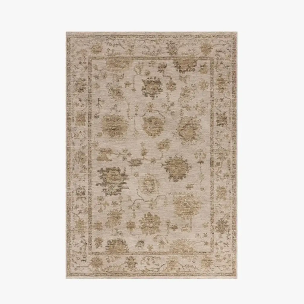 The Vincent lends a traditional touch with its hand-knotted wool form adorned with an antiqued pattern. Its versatile gray, stone, and soft tan color palette lends warmth and culture, styling well into living and bedrooms.