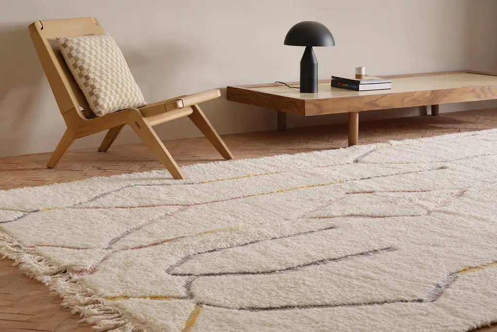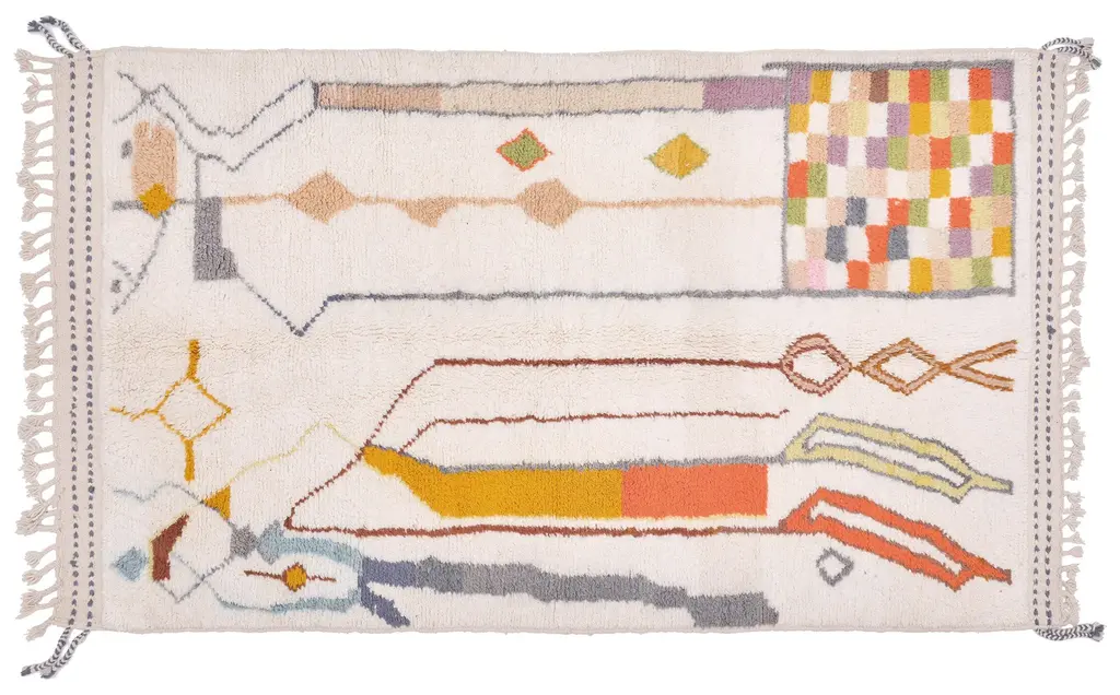 Our Moroccan pieces are each one-of-a-kind. Much of our collection was woven between 30 and 100 years ago, and curated by us. Other rugs in our collection are fresh off the loom and made with traditional techniques. Moroccan rugs don’t come with a key. As with any painting or poem, their motifs have many subjective interpretations. Originally made for personal use, these rugs took months to weave, documenting a shifting tide of events and emotions in the weaver’s life.