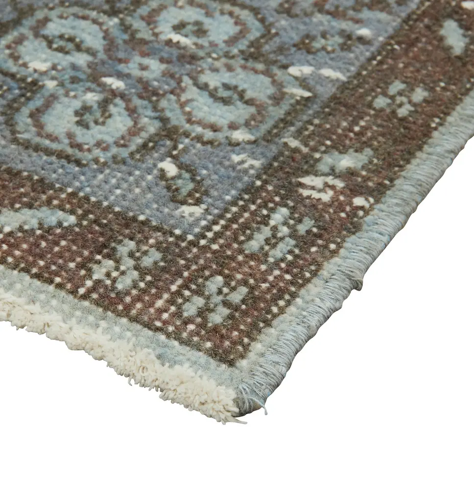 Vintage Allover Handknotted Blue Wool Rug - 9'11" X 6'