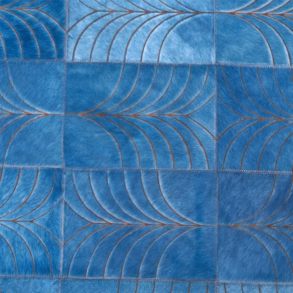 With elegant vintage curves and a shimmering poolside aesthetic, the stunning Las Palmas rug is a quintessential statement piece where high style meets relaxed luxury. Art Hide’s bold new denim color is the perfect shade for this striking new rug which incorporates Art Hide’s signature, highly intricate, laser burn technique. The Las Palmas is a beautiful rug for a living or dining room setting. Art Hide cowhide rugs are stitched together using commercial grade nylon thread and feature a branded ribbon edge finish. They are built to last a lifetime.This rug can easily be customized to any color, size or shape.Art Hide rugs are usually made to order. Please allow approximately 4 weeks for delivery.