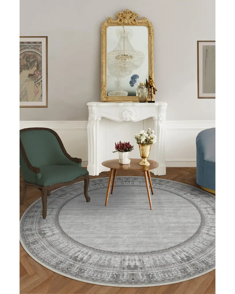 Our Vintage Daisy Bordered Grey rug will create an effortless layered effect when placed amongst your current home furnishing. Its classic border is made of keely distressed daisies with a color palette of almond milk, silver taupe, ivory, pearl and grey hues. This timeless and neutral decorative piece will elevate any contemporary, cottage, traditional or shabby chic home. Water-resistant, stain-resistant, and machine-washable. Rug colors may vary slightly according to your device and the lighting in your space.