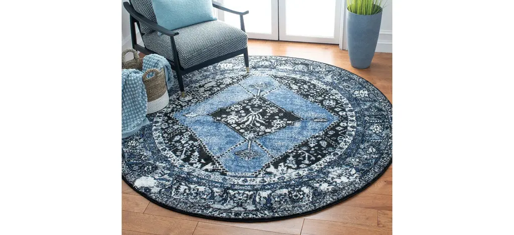 The Vintage Hamadan I Area Rug brings a refined look of antiquity to today's exciting home decor with its richly colored hues and Persian-inspired design. This rug features high-performance, durable construction making it resistant to pulls from playful pets and under normal, household conditions, this rug is resistant to shedding. Safavieh works with product safety research and test institute OEKO-TEX to ensure that this rug has passed Standard 100 by OEKO-TEX tests for harmful substances to ensure that it is harmless in human ecological terms.