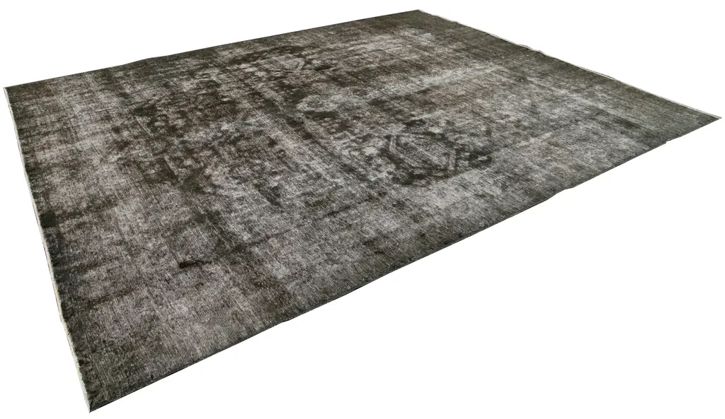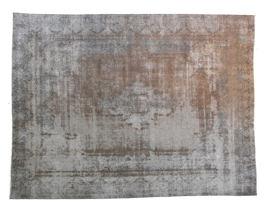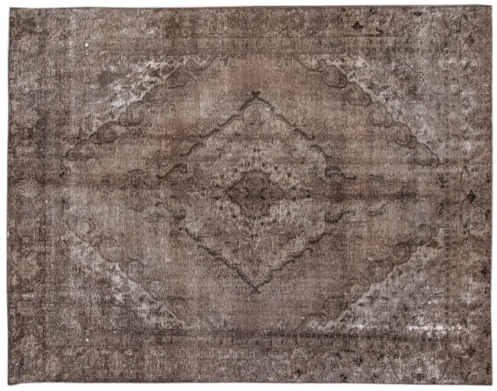 Beautiful hand-knotted vintage wool rug with a brown field. This distressed rug has gray accents featuring a medallion pattern design. This rug measures: 9'7" X 12'2". Our Rugs are professionally cleaned before shipping.