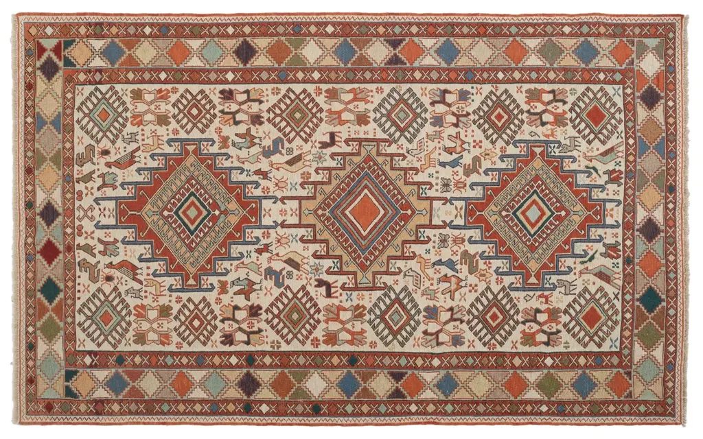 Vintage Handmade Red Medallion Wool Rug