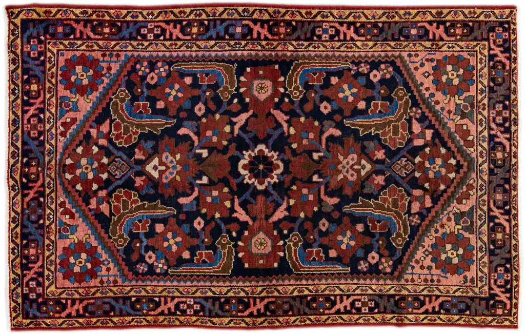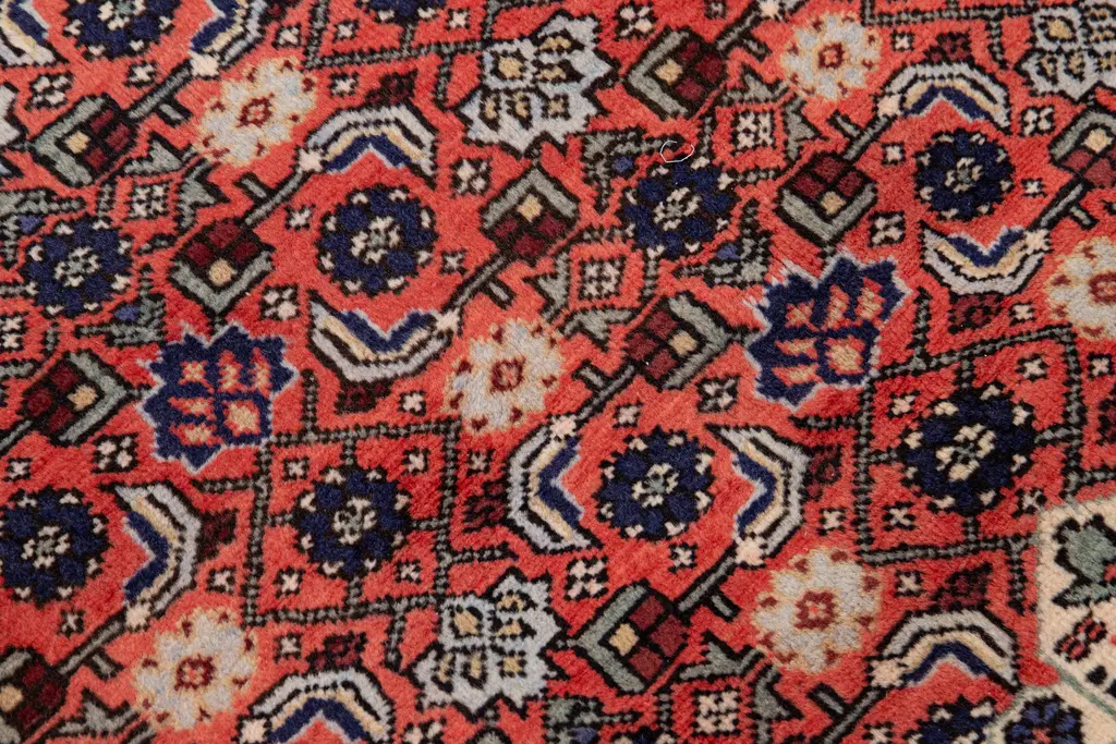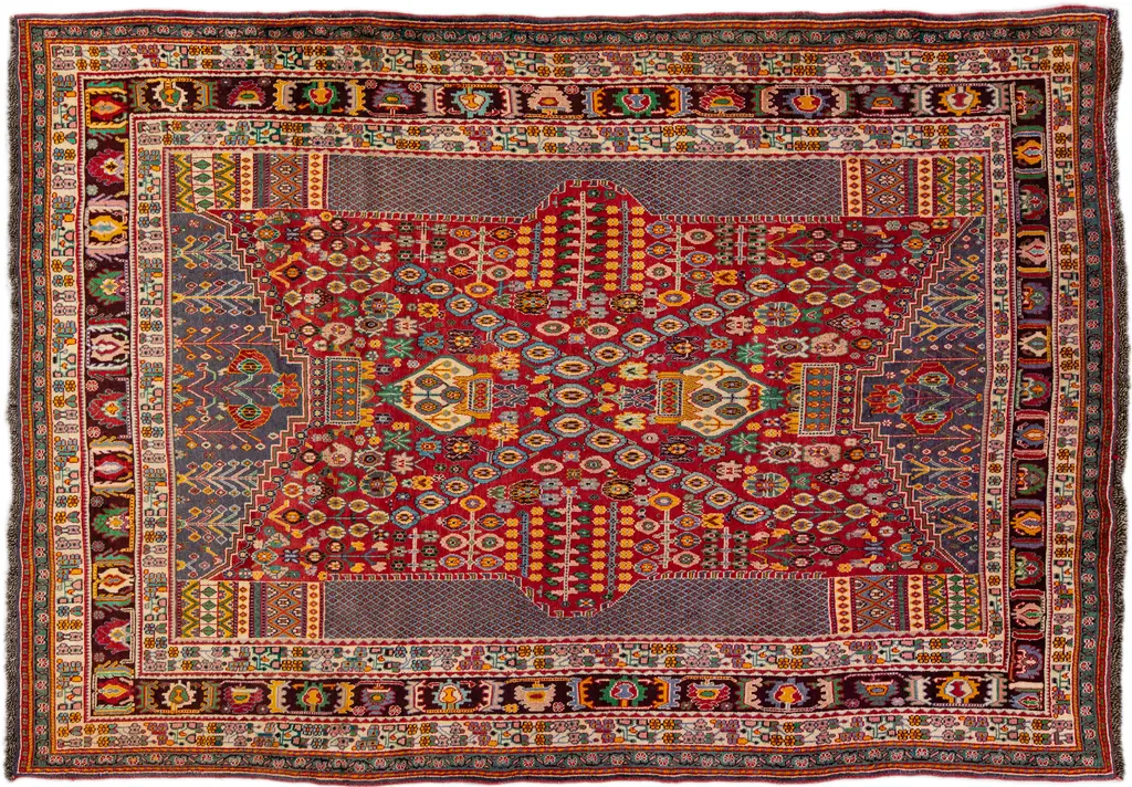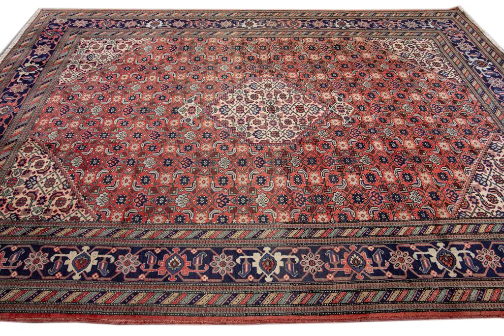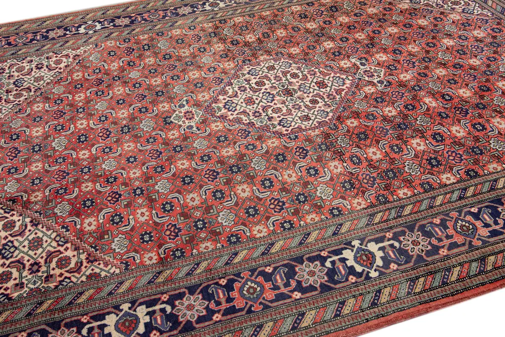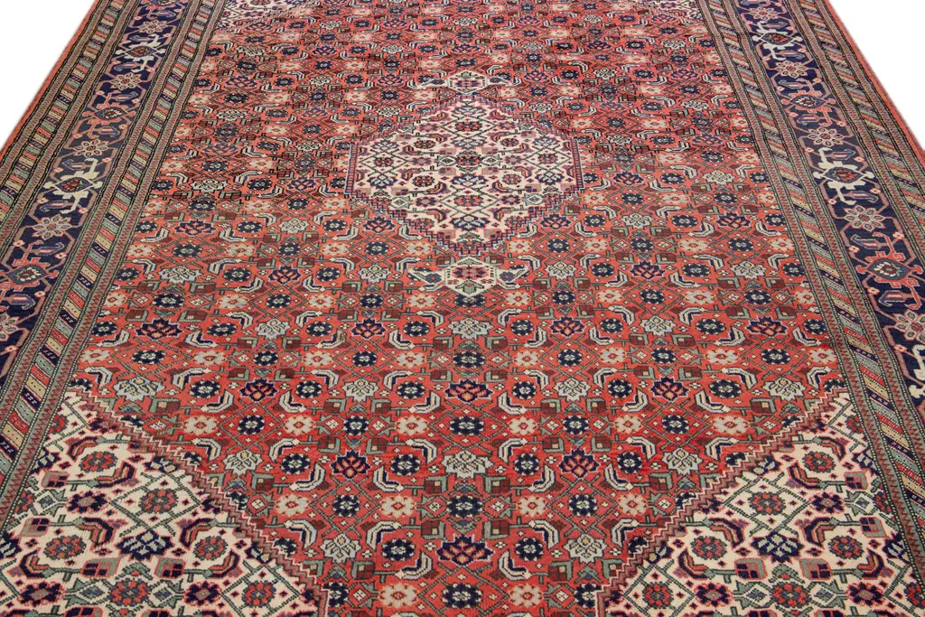 Beautiful Vintage Persian hand-knotted Wool rug with the red field. This Persian rug has a multicolor accents in all over medallion design. This rug measures: 7'10" X 11'1".