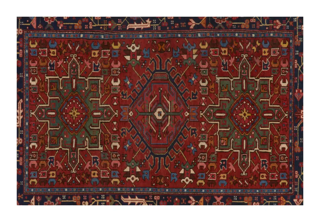 •6'2" x 4'7"•vegetable dyed wool•handwoven and knotted•distinctive geometric motif and central medallions•woven in the foothills of the karadagh mountains in northwestern iran•one of a kind•HG167366