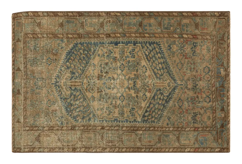 •6'6" x 4'•vegetable dyed wool•hand woven and knotted•made in the village of malayer between the major iranian weaving centers of hamadan and sarouk•one of a kind•HG166522