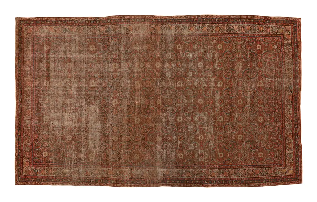 •7'3" x 4'•vegetable dyed wool•hand woven and knotted•made in the village of malayer between the major iranian weaving centers of hamadan and sarouk•one of a kind•HG164748