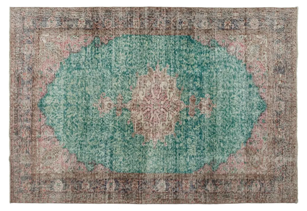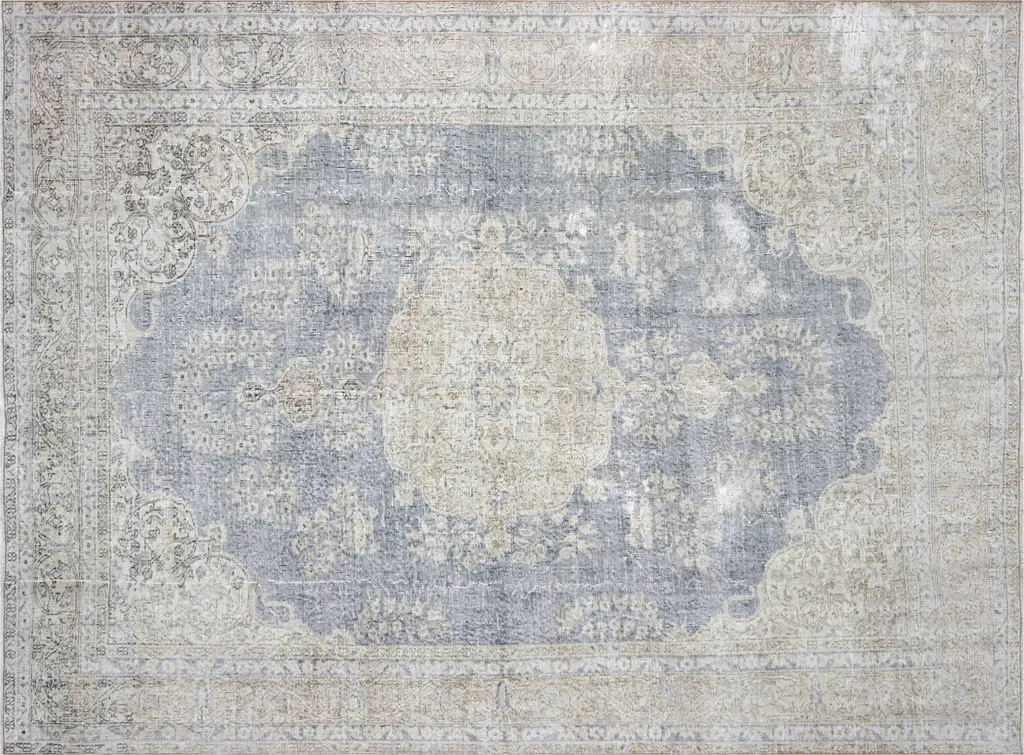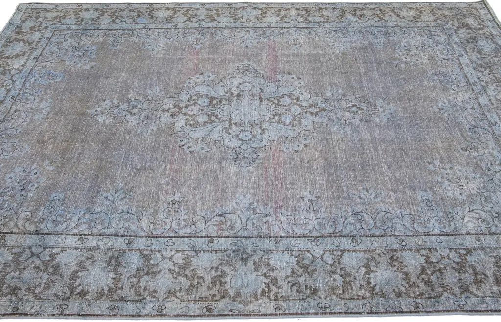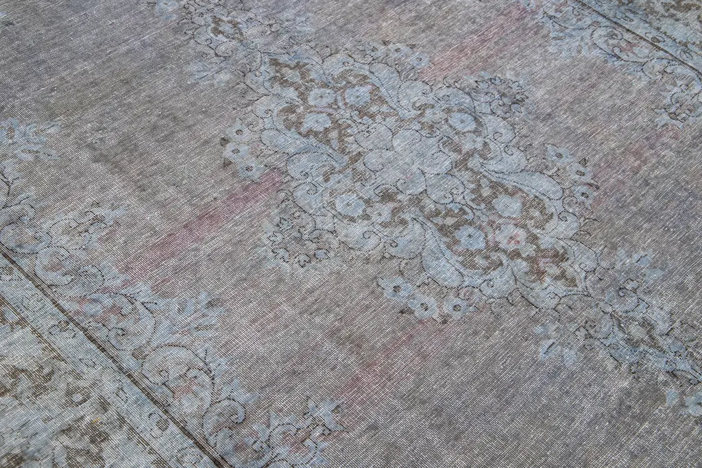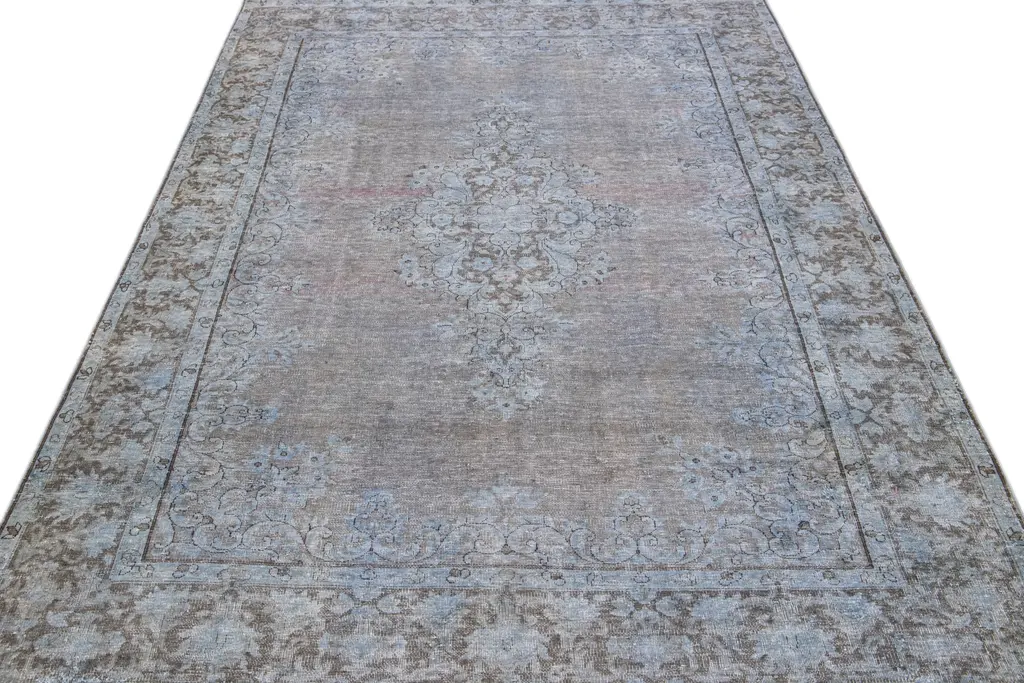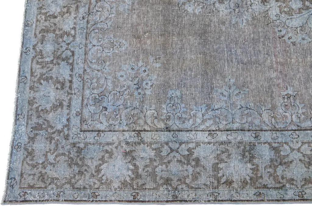Beautiful Vintage Overdyed hand-knotted wool rug with a gray field. This Persian rug has blue accents in an all-over medallion design. This rug measures: 5'9'' x 8'8". Our Rugs are professionally cleaned before shipping.