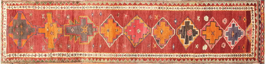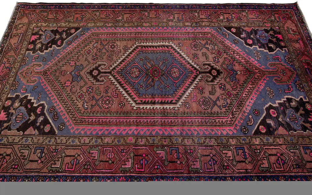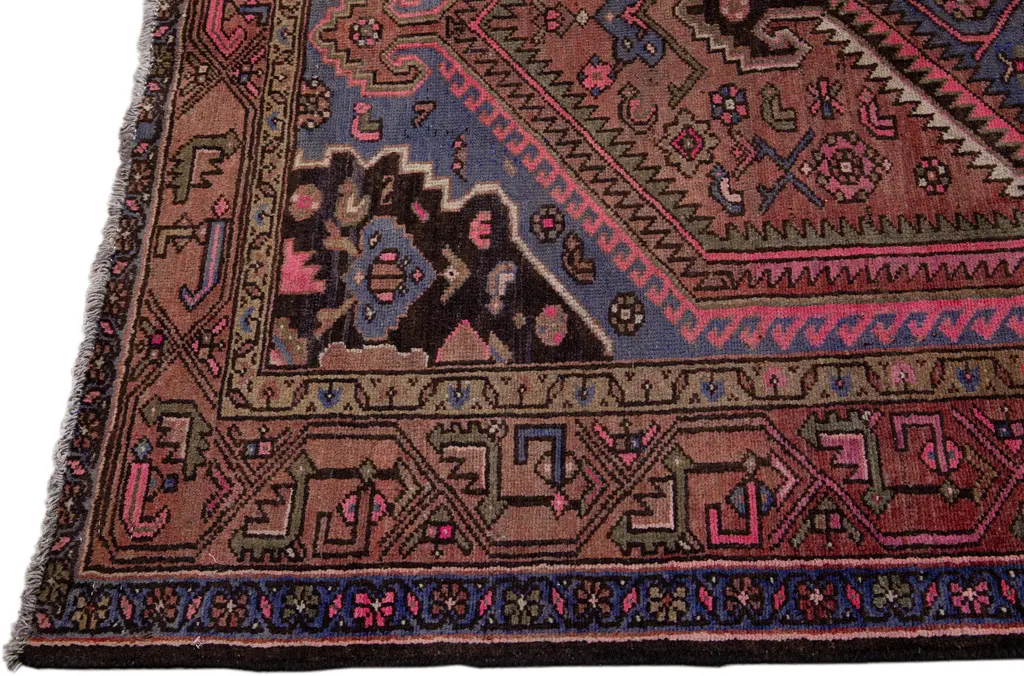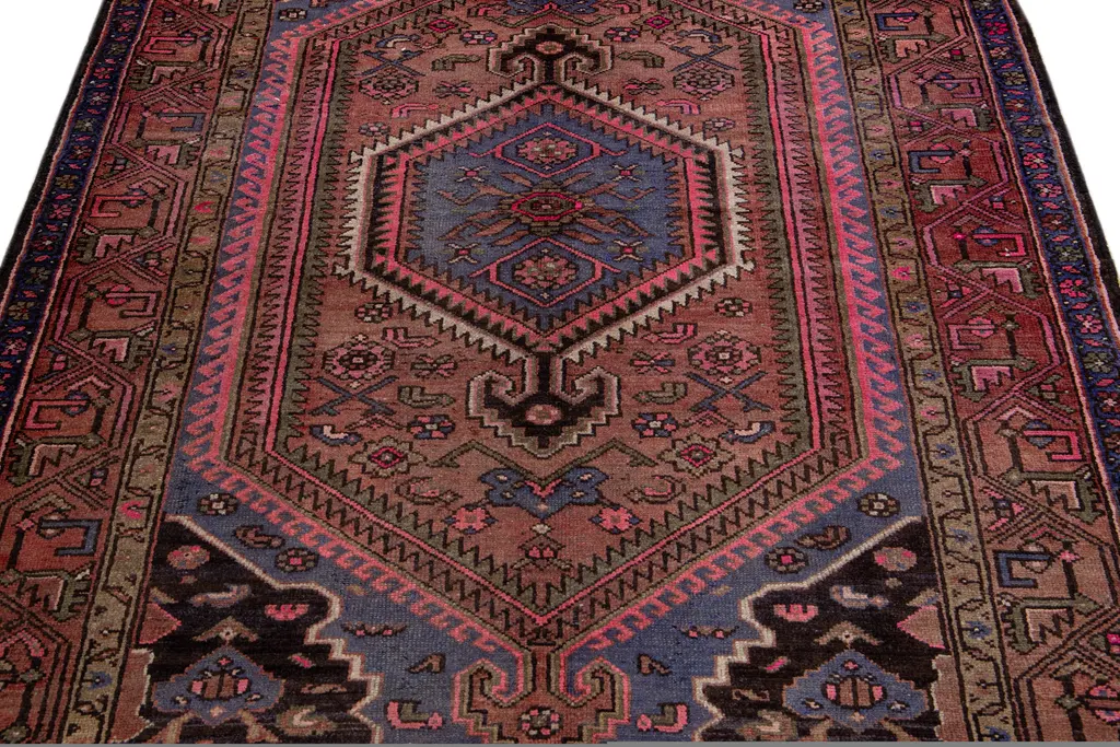Beautiful Vintage Persian hand-knotted Wool rug with the red field. This Persian rug has a multicolor accents in all over geometric design. This rug measures: 4'9" X 6'9"