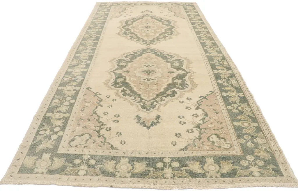 Vintage Turkish Oushak Rug, 5'01 X 10'04