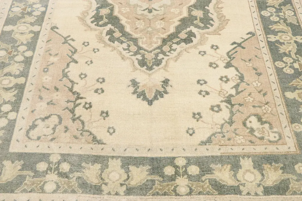 Take a timeless, tailored design, mix in a dash of romantic connotations and antique-washed colors to get this fresh look that’s as comfortable as it is chic. Soft, bespoke vibes meet romantic Swedish Rococo style in this hand knotted wool vintage Turkish Oushak rug. The antique washed tan field features a double botanical medallion and delicate floral sprigs sprout from each corner spandrel. Pure simplicity meets daintily rendered elements in a homespun neutral colorway.