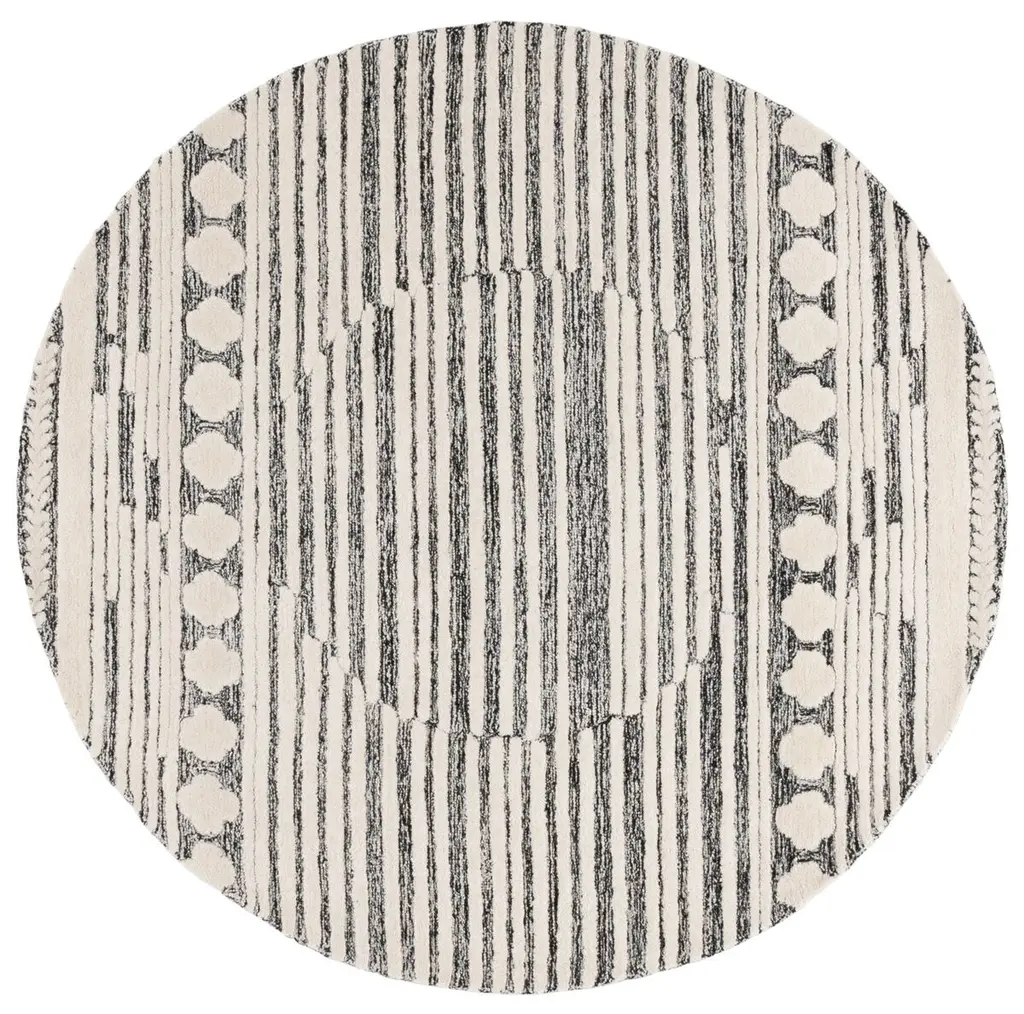 Elevate your decor with this meticulously crafted 10 x 14 large rectangle area rug, colored in soothing beige and ivory tones that will add a touch of elegance and warmth to any room. With a comfortable 3/8 inch pile height, this hand tufted rug merges luxury with durability, creating a plush, inviting surface that is delightful underfoot. Constructed from a premium blend of 70% wool, 20% chenille, and 10% cotton, this rug offers an exquisite feel with the resilience needed for high-traffic areas. The wool provides a natural softness and durability, while the chenille adds a subtle sheen and texture variation, with cotton ensuring the rug remains breathable. Each rug is responsibly handcrafted by skilled artisans in India, embodying a modern style that seamlessly complements contemporary interiors. The refined pattern displayed in the image, showcasing a series of dotted lines in a regimented formation, imparts a sense of rhythm and motion to the space it inhabits. Whether placed in a living room, dining area, or bedroom, this rug's neutral palette ensures it integrates impeccably with any color scheme or design aesthetic, providing an understated yet sophisticated foundation for your furnishings.