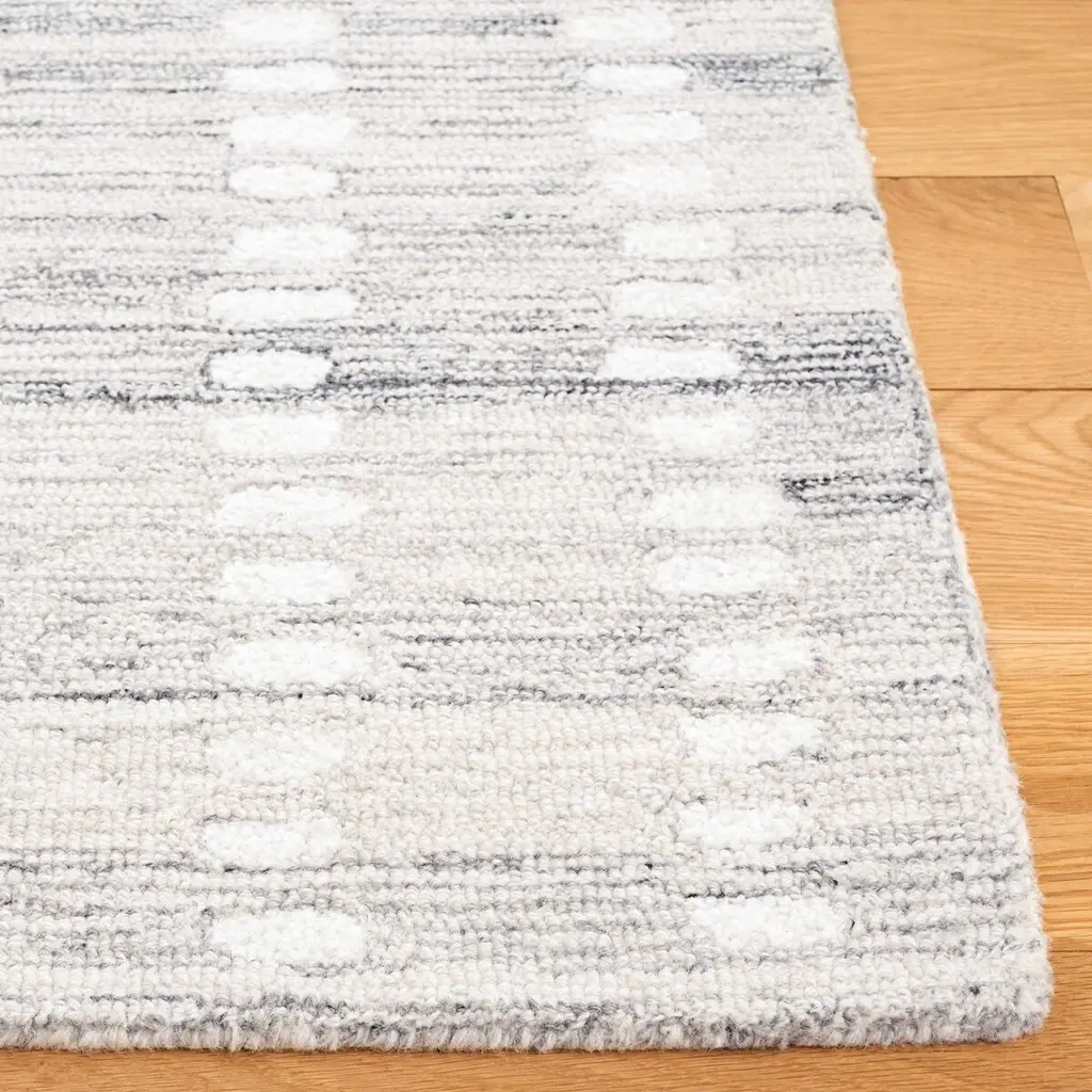 Elevate your decor with this meticulously crafted 10 x 14 large rectangle area rug, colored in soothing beige and ivory tones that will add a touch of elegance and warmth to any room. With a comfortable 3/8 inch pile height, this hand tufted rug merges luxury with durability, creating a plush, inviting surface that is delightful underfoot. Constructed from a premium blend of 70% wool, 20% chenille, and 10% cotton, this rug offers an exquisite feel with the resilience needed for high-traffic areas. The wool provides a natural softness and durability, while the chenille adds a subtle sheen and texture variation, with cotton ensuring the rug remains breathable. Each rug is responsibly handcrafted by skilled artisans in India, embodying a modern style that seamlessly complements contemporary interiors. The refined pattern displayed in the image, showcasing a series of dotted lines in a regimented formation, imparts a sense of rhythm and motion to the space it inhabits. Whether placed in a living room, dining area, or bedroom, this rug's neutral palette ensures it integrates impeccably with any color scheme or design aesthetic, providing an understated yet sophisticated foundation for your furnishings.