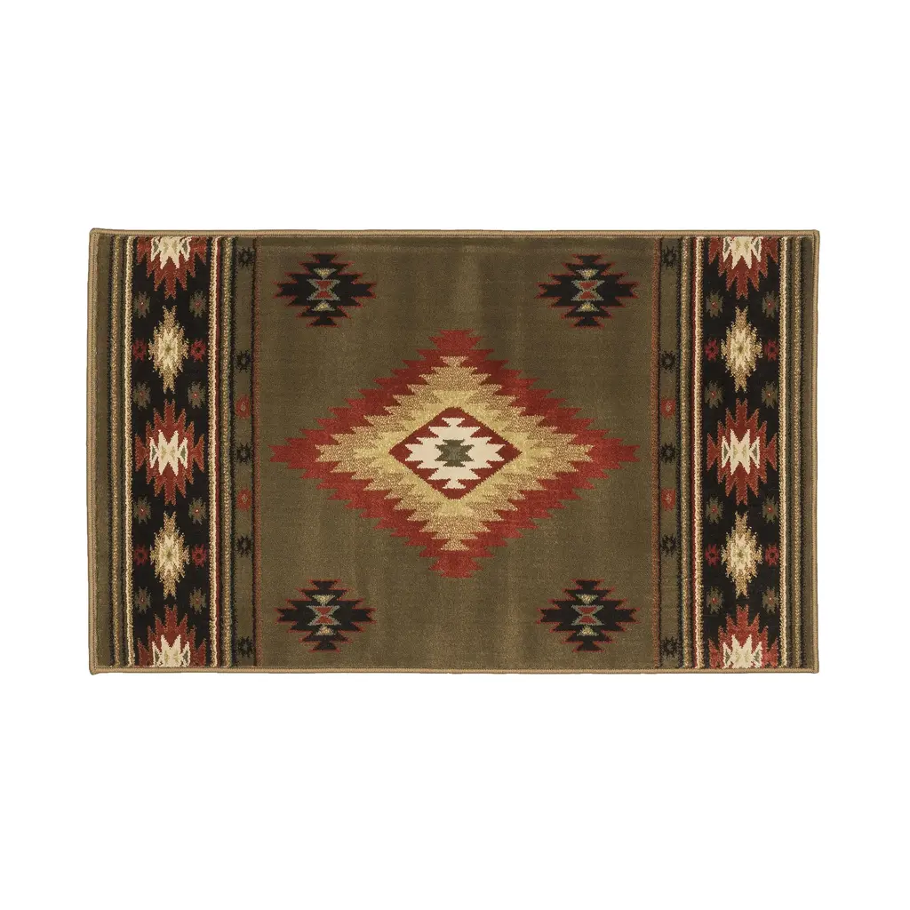 Bring the warmth and comfort of our Vista Desert Rug into your home! This thick, heavy weight Olefin rug feels soft and luxurious underfoot while its unique geometric design inspired by the art of the American Southwest adds beauty and interest to any space. Equally complementary to a rustic lodge or cabin and a modern home, this rug's neutral palette blends flawlessly with most decorative styles and color palettes. Crafted of durable, stain-resistant, flame-resistant Olefin fiber, this rug offers a perfect option for high-traffic areas and by your hearth or wood stove. The generous size of this rug covers and protects a wide area. Its serged edges offer additional durability to keep it looking great for years to come. Spot clean as needed. Imported.
