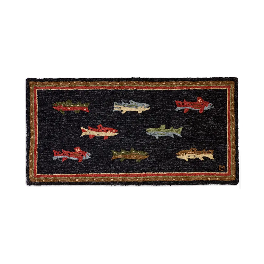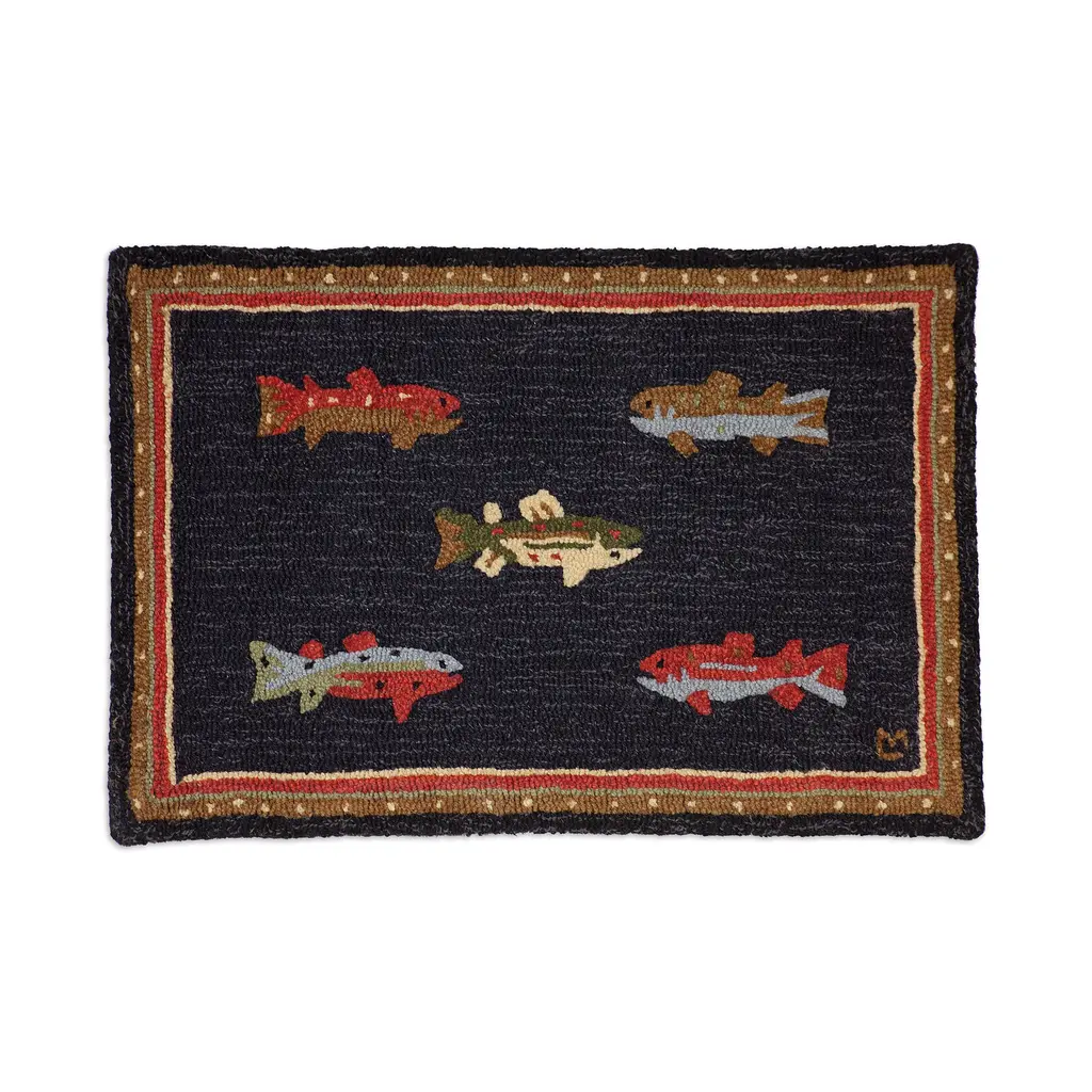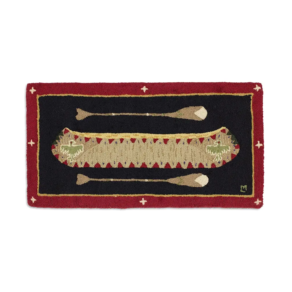With a rustic lakeside motif and stylized border, this handsome Vista Lakeside Retreat Rug is crafted of flame-resistant, 100% Olefin fibers, making it perfect for in front of your hearth. It's large 30" x 50" size protects a wide area. It's also a cozy addition to any den, cabin, family room and more! Ultra-durable, heavy-twist yarn is tough and colorfast to resist staining, making it ideal for high-traffic areas.Made in the USA