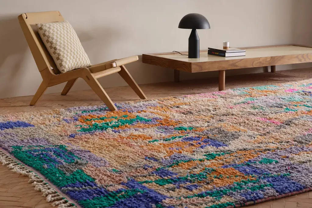 Our Moroccan pieces are each one-of-a-kind. Much of our collection was woven between 30 and 100 years ago, and curated by us. Other rugs in our collection are fresh off the loom and made with traditional techniques. Moroccan rugs don’t come with a key. As with any painting or poem, their motifs have many subjective interpretations. Originally made for personal use, these rugs took months to weave, documenting a shifting tide of events and emotions in the weaver’s life.