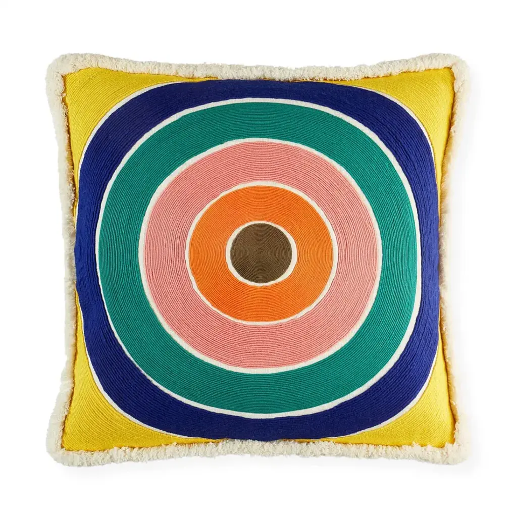 Inspired by a 1974 project by Verner Panton, this rug is an ode to color and geometry. Concentrical bands emerging from a purple square lend the pattern its hypnotizing look, its eccentricity reinforced by a multicolor palette combining eight cool and warm tones from the Panton series. Minutely hand-tufted in India from fine wool yarns, each piece is unique. Please contact the Concierge for customization options.