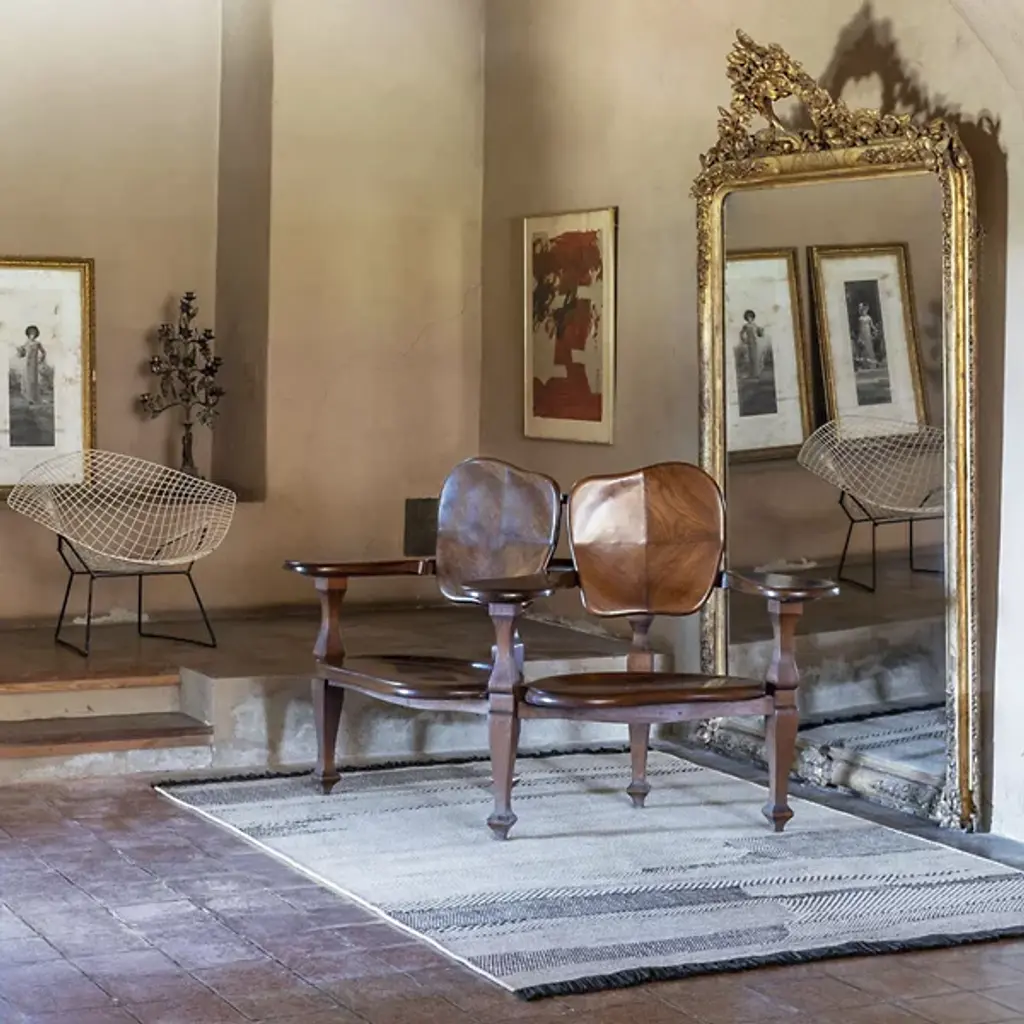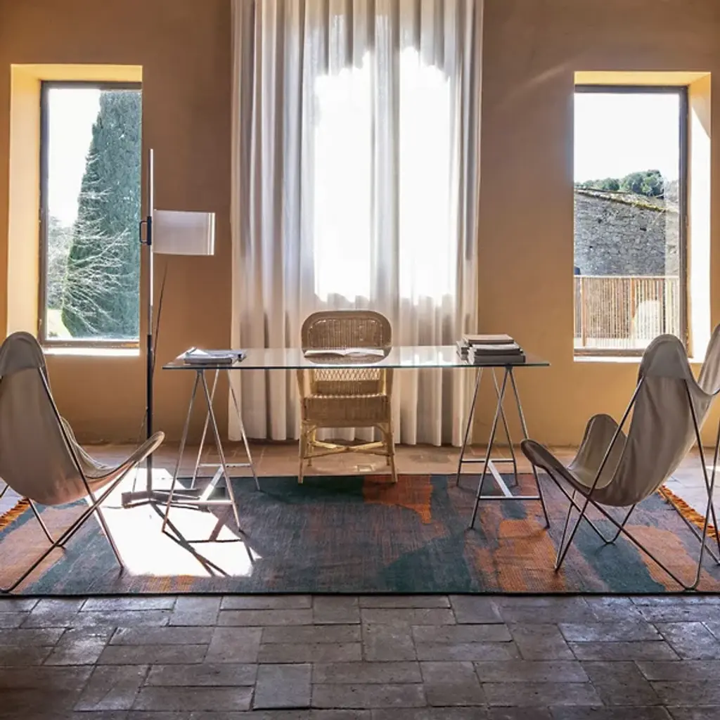 Tasteful textures and rustic patterns intersect imperfectly, seemingly at random, with the Wabisabi Area Rug from Nanimarquina, but everything is carefully planned. Designed by Nani Marquina and woven by artisan hands in India from soft, strong New Zealand wool, the design derives from the philosophy of “Wabisabi,” or the belief that beauty is found in imperfection rather than the imposition of perfect order. Each rug is subtly unique, resulting in finding joy in weaving, adjusting warp and weft, and creating a memorable texture, intertwining contrasting colors in different zones, bordered by short fringes at each end to create a dynamic, rustic design.
