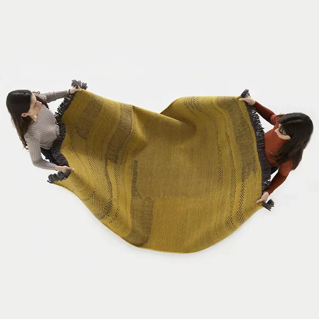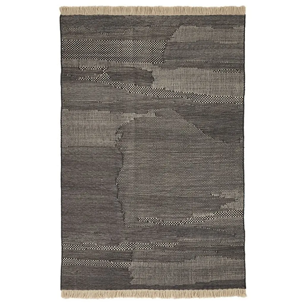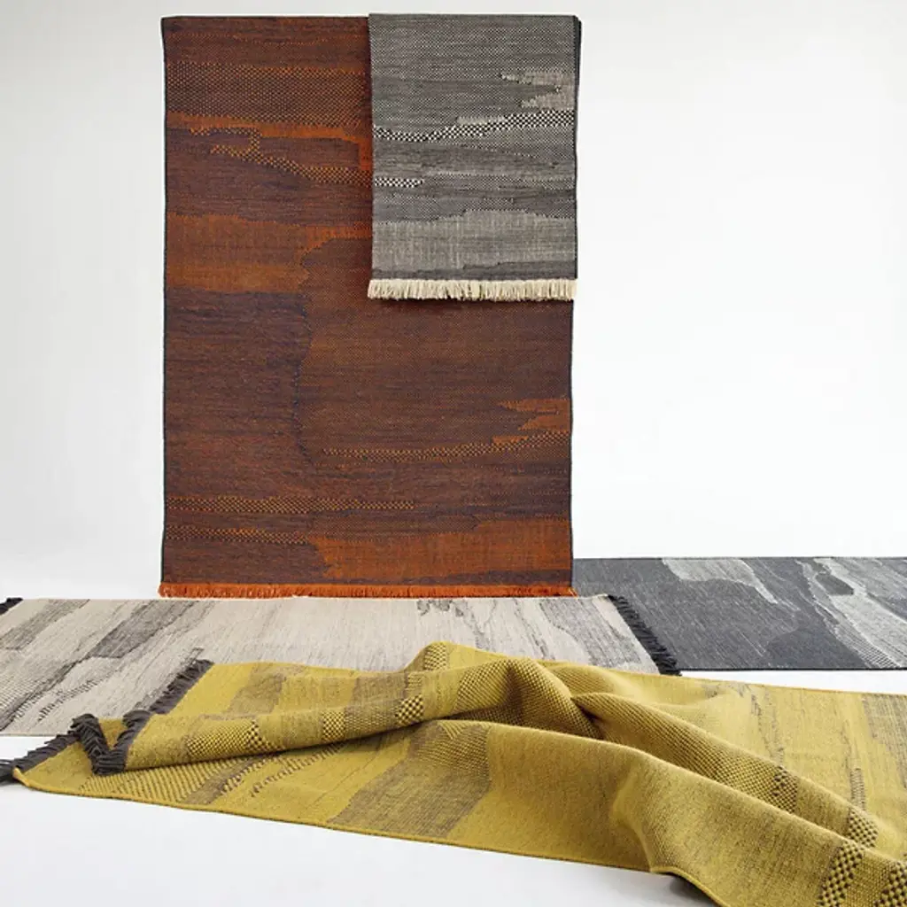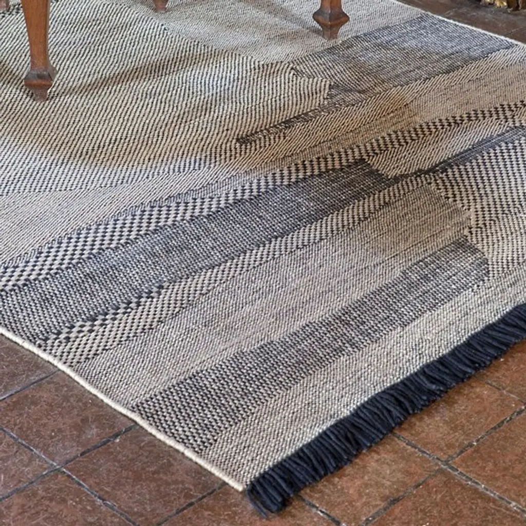 Tasteful textures and rustic patterns intersect imperfectly, seemingly at random, with the Wabisabi Area Rug from Nanimarquina, but everything is carefully planned. Designed by Nani Marquina and woven by artisan hands in India from soft, strong New Zealand wool, the design derives from the philosophy of “Wabisabi,” or the belief that beauty is found in imperfection rather than the imposition of perfect order. Each rug is subtly unique, resulting in finding joy in weaving, adjusting warp and weft, and creating a memorable texture, intertwining contrasting colors in different zones, bordered by short fringes at each end to create a dynamic, rustic design.