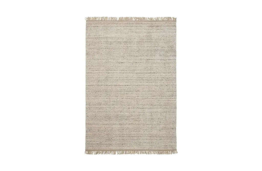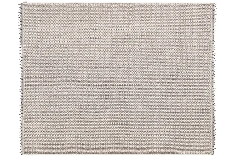 Walden is a reflection upon simple living in natural surroundings. A colorful microstructure, on a wool and viscose weaving with a mélange effect. Each of the 6 colors is carefully chosen, ‘tone on tone’ or in contrast with the base yarn. The fringes are obtained by a particular twisting technique and manual application on the edge of the rug. Colors WD|02 (cream | burgundy) WD|03 (light grey | apple green) WD|05 (light grey | turquoise) WD|06 (light grey | black) Technical informations Quality: Handwoven 'dhurrie' rug, wool and cotton. Thickness: 6 mm approx. Weight: 3 Kg/sqm approx.The configuration (size + color) must be completed to obtain the final price of the product.Dhurrie is a form of hand weaving very similar to “kilim”. It is made up exclusively of warp and weft, woven and not knotted. It is also called “flat weave”. The pattern or design is created solely by the weft which covers the warp. It does not allow for complicated patterns or textured surfaces as the other techniques do. This may at first appear as a limitation. But we have evolved the original technique by introducing additional threads to the basic wool weft (low-pile). The pattern is produced by this secondary high pile in viscose. The carpet is backed with the same latex and cotton canvas method as the hand tufted carpets.