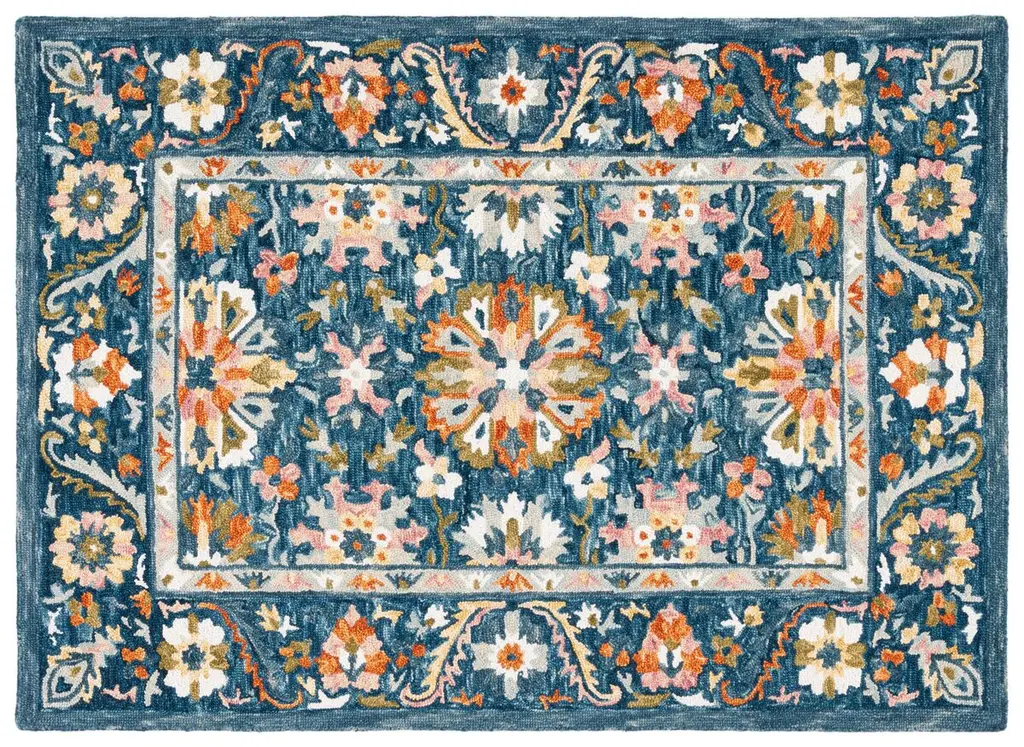 Elevate your living space with our hand tufted area rug. Measuring 10 by 14 feet with a 1/2 inch pile height, this large rectangle rug adds a touch of elegance and comfort. The blend of blue and green hues creates a calming atmosphere, perfect for any room. Crafted from 85 percent wool and 15 percent cotton, this rug offers a soft underfoot feel while maintaining its beautiful appearance. Made in India, it features a traditional style that seamlessly complements a variety of decor themes. Whether placed in your living room or dining area, this rug serves as a stunning foundation that enhances your home's aesthetic. Enjoy the timeless charm and inviting warmth it brings to your favorite spaces.