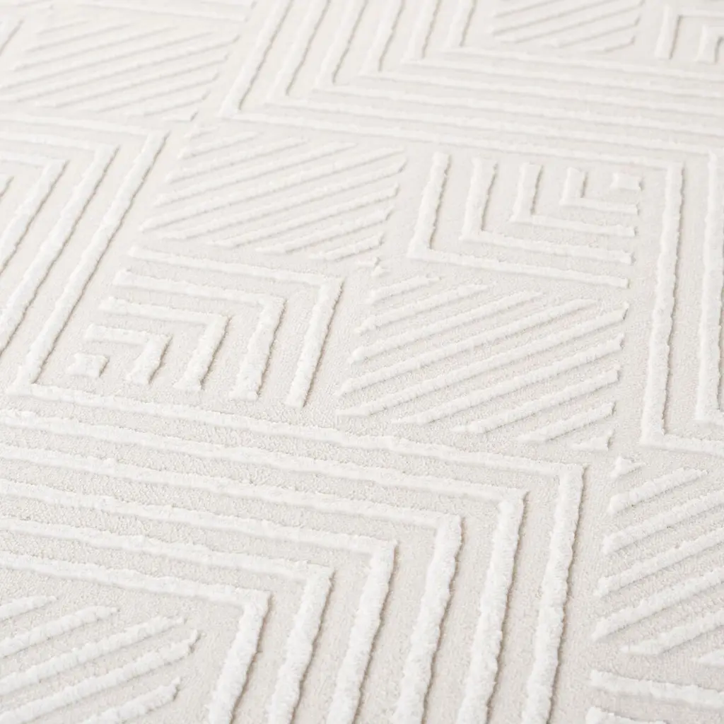 Elevate your home with the luxurious touch of our Modern Ivory Area Rug, a testament to sophistication and contemporary design. Invitingly plush, with a medium rectangle profile measuring 5 feet by 7 feet and a dense 1/2 inch pile height, this piece is the epitome of foot-cradling comfort. Expertly power-loomed in Turkey, this area rug exudes durability and precision, showcasing an exquisite geometric pattern that commands attention. Its intricate maze-like motif interspersed with clean, angular lines will be the focal point of any room, harmoniously blending with both minimalistic and elaborate interiors. Crafted from premium polyester, our area rug offers an irresistibly soft surface with the added bonus of easy maintenance, ensuring it remains an elegant centerpiece for the discerning homeowner. The modern style, embodied by its crisp ivory palette, adds a serene and chic vibe that complements a wide range of color schemes and decor themes. Bring home a piece that fuses timeless grace with modern sensibilities, making the Modern Ivory Area Rug an essential addition to any refined living space.
