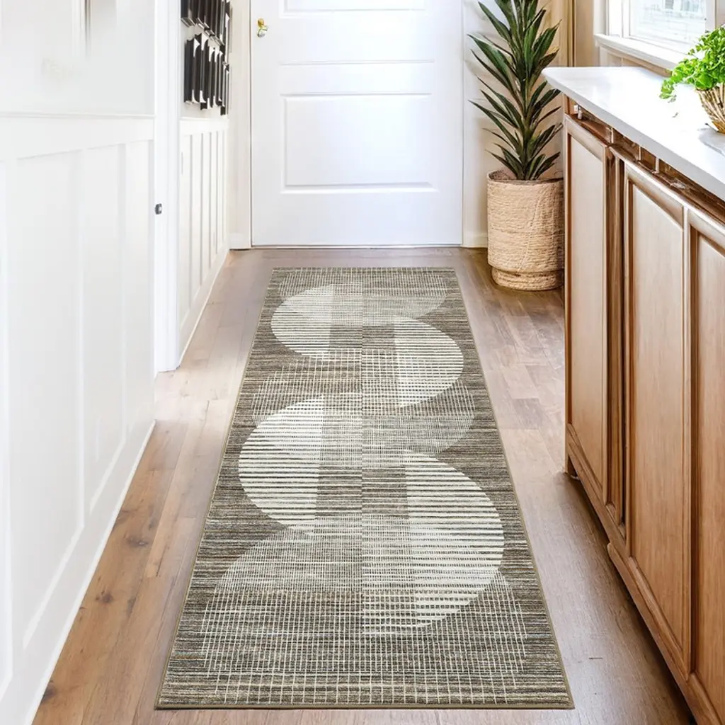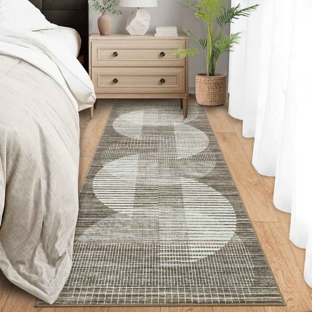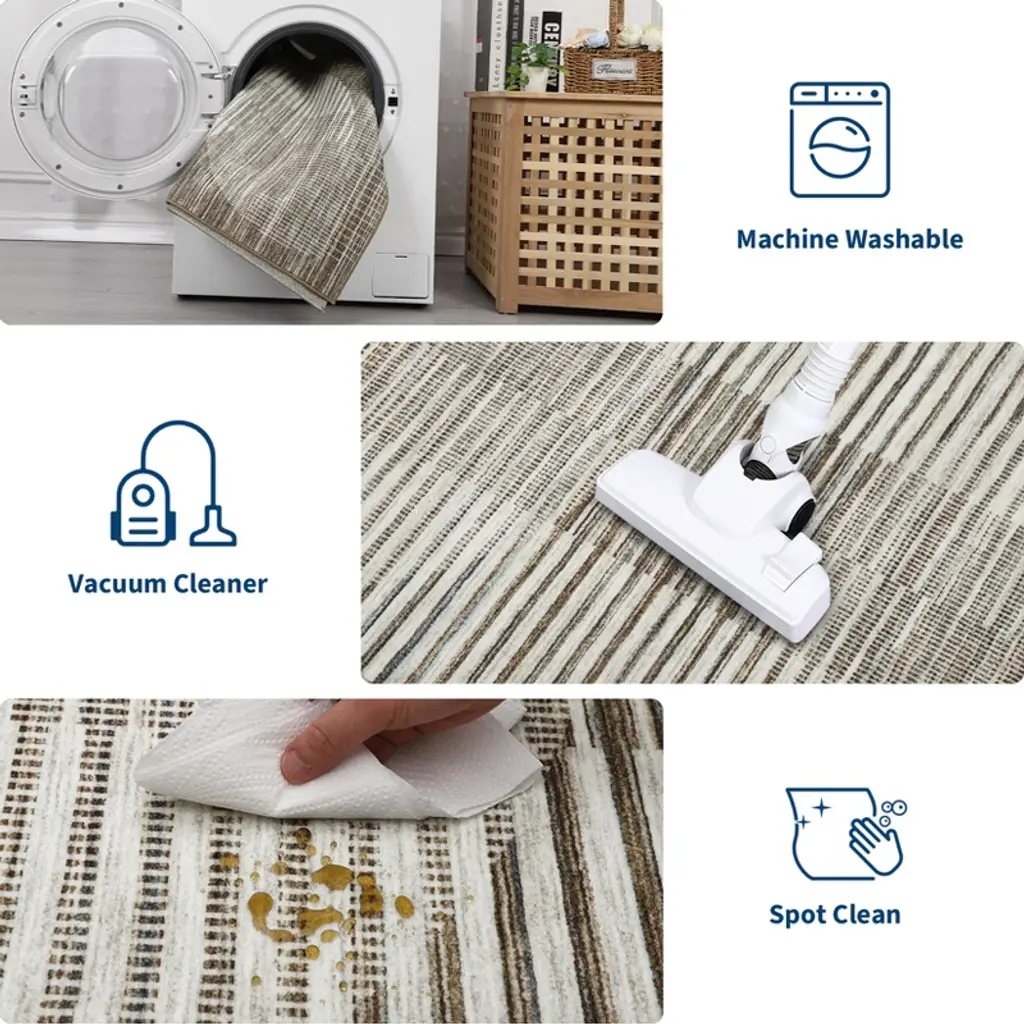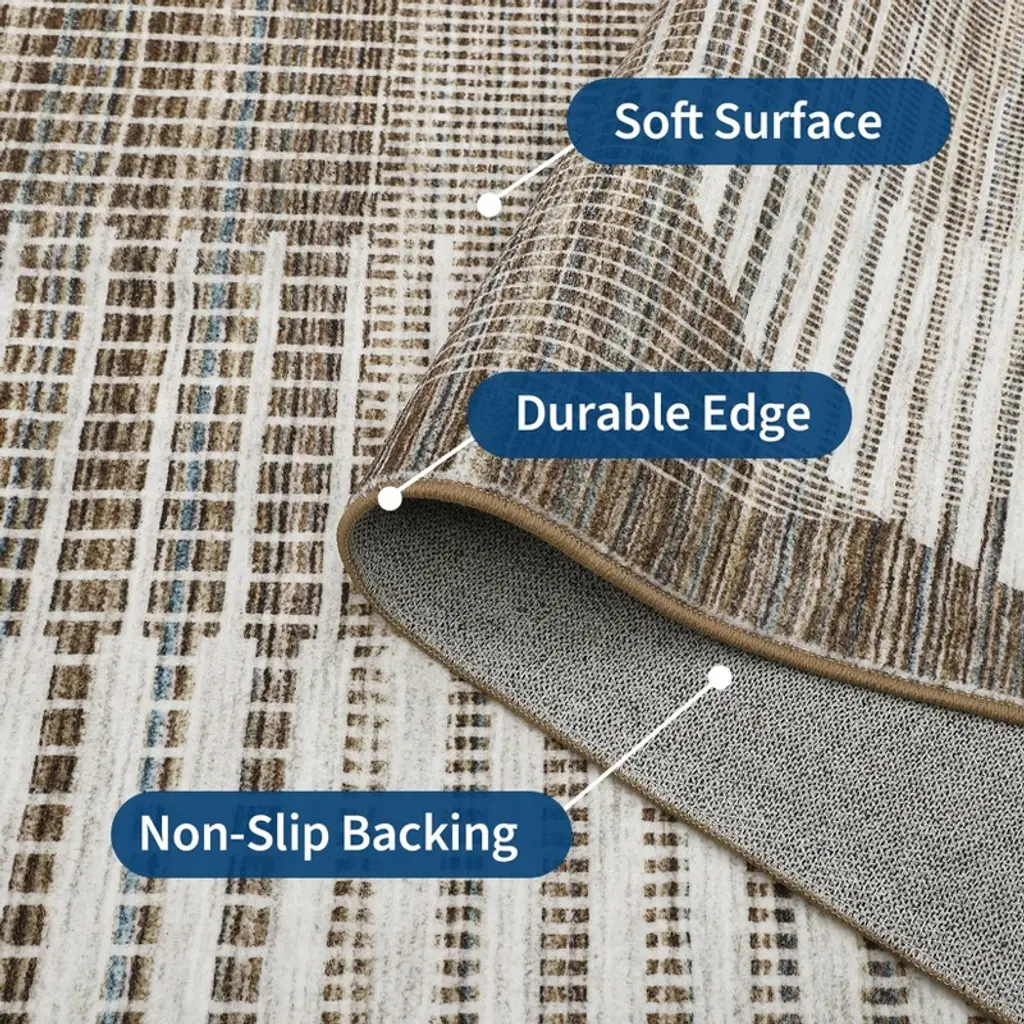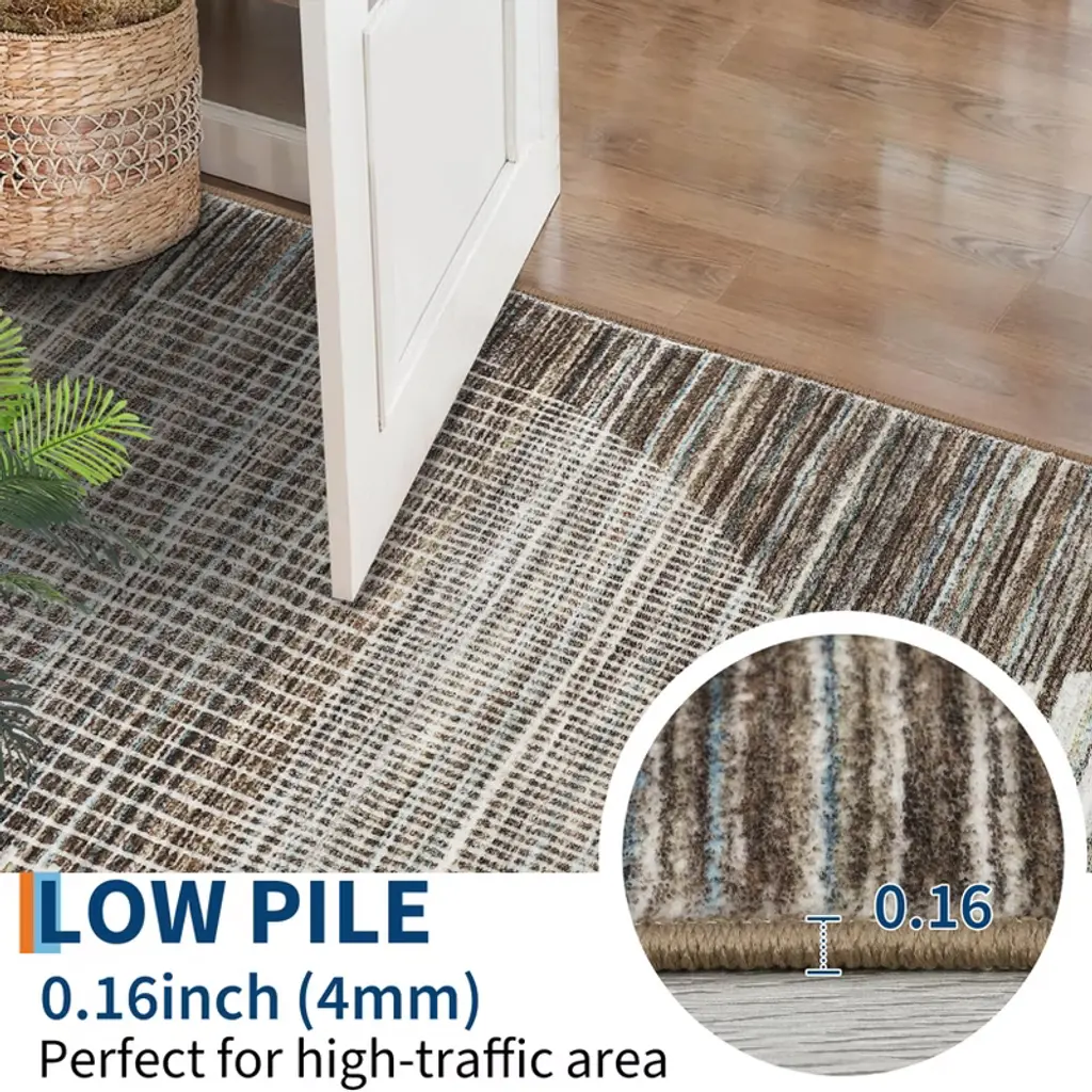 Washable Area Rug For Living Room, 2*6ft Modern Soft Non Slip, Rugs Contemporary Rectangle Low Pile Large Carpet For Bedroom, Office, Brown