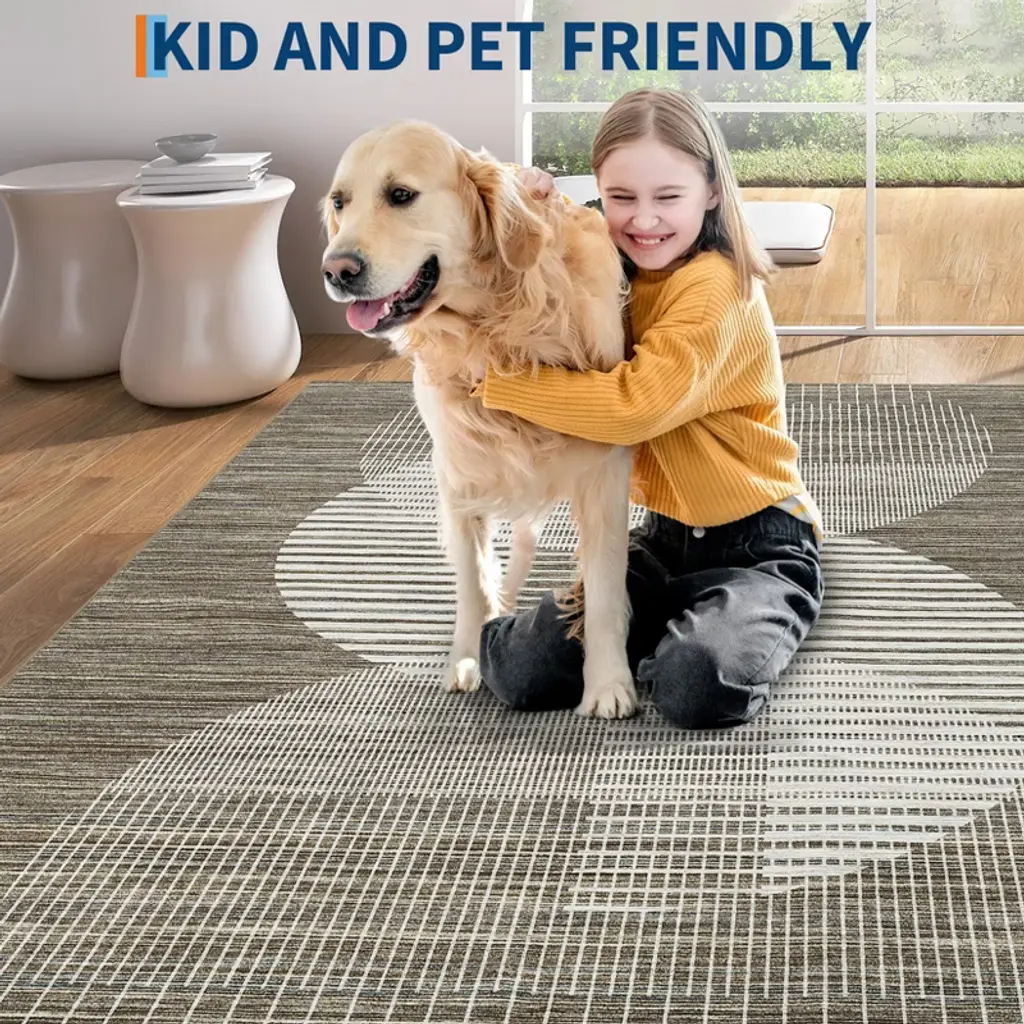 Elevate your modern space with our sophisticated area rug, designed for the contemporary home. This striking piece features a clean, minimalist aesthetic brought to life with a dynamic pattern of semi-circles and crisp linear elements.Perfect for adding a touch of artistic flair to your living room, creating a focal point in a home office, or enhancing the serene ambiance of a bedroom.Its versatile design complements a wide range of decor styles