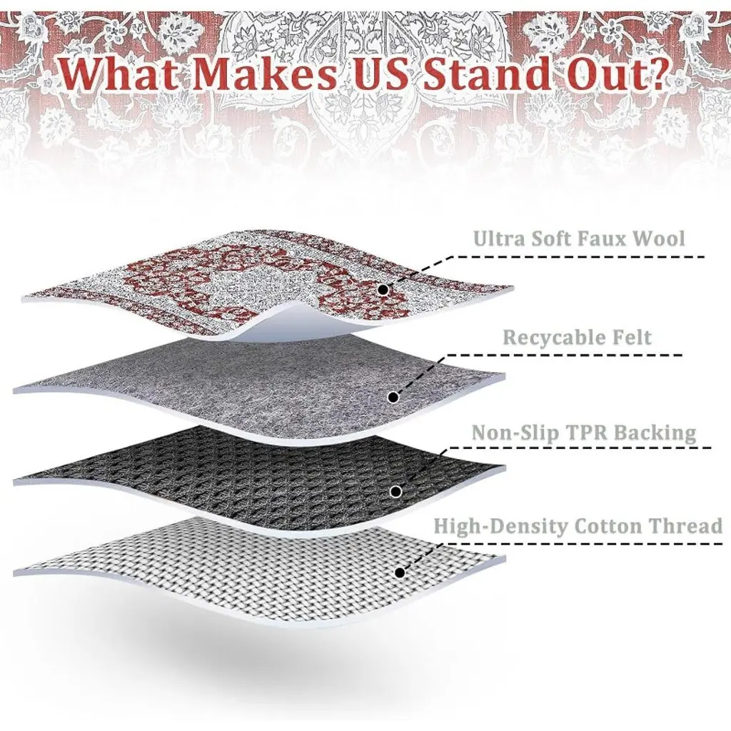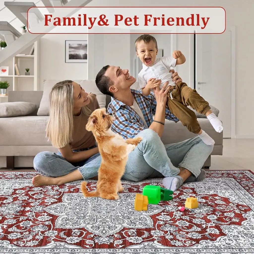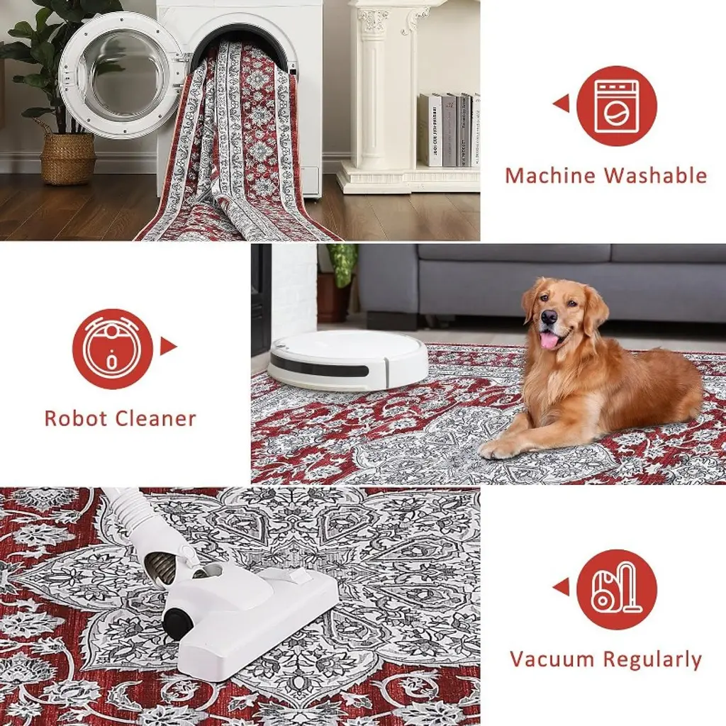 Washable Area Rug, Low-profile Large Area Rug With Non-slip Backing