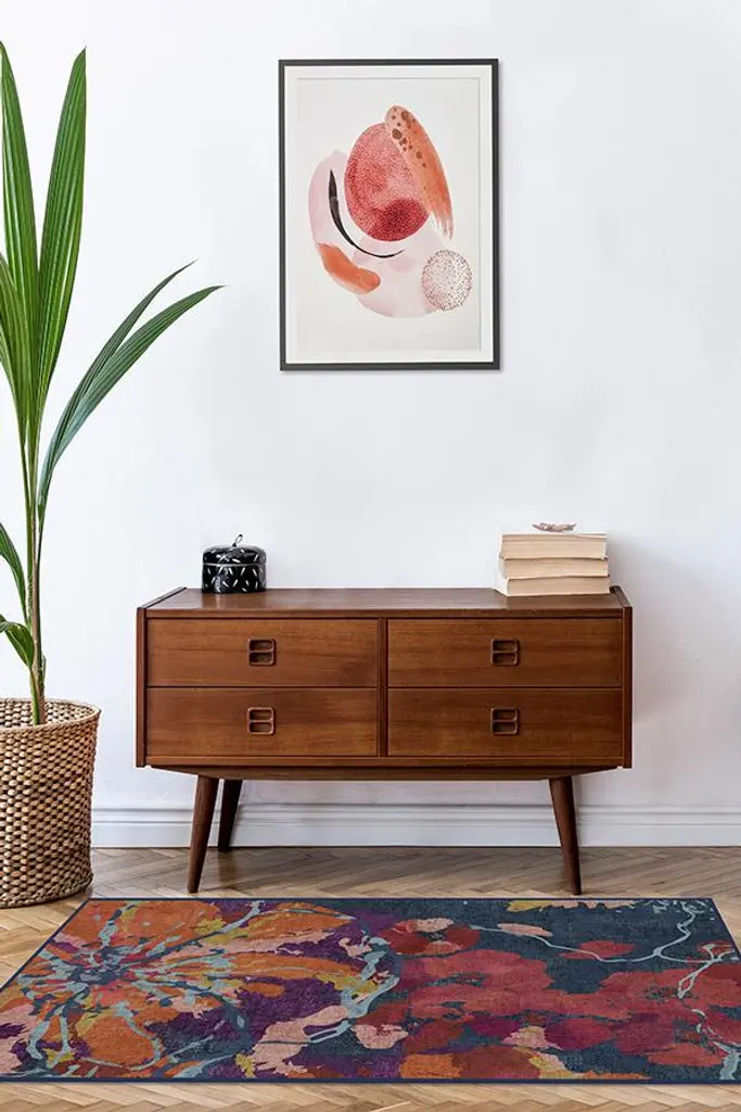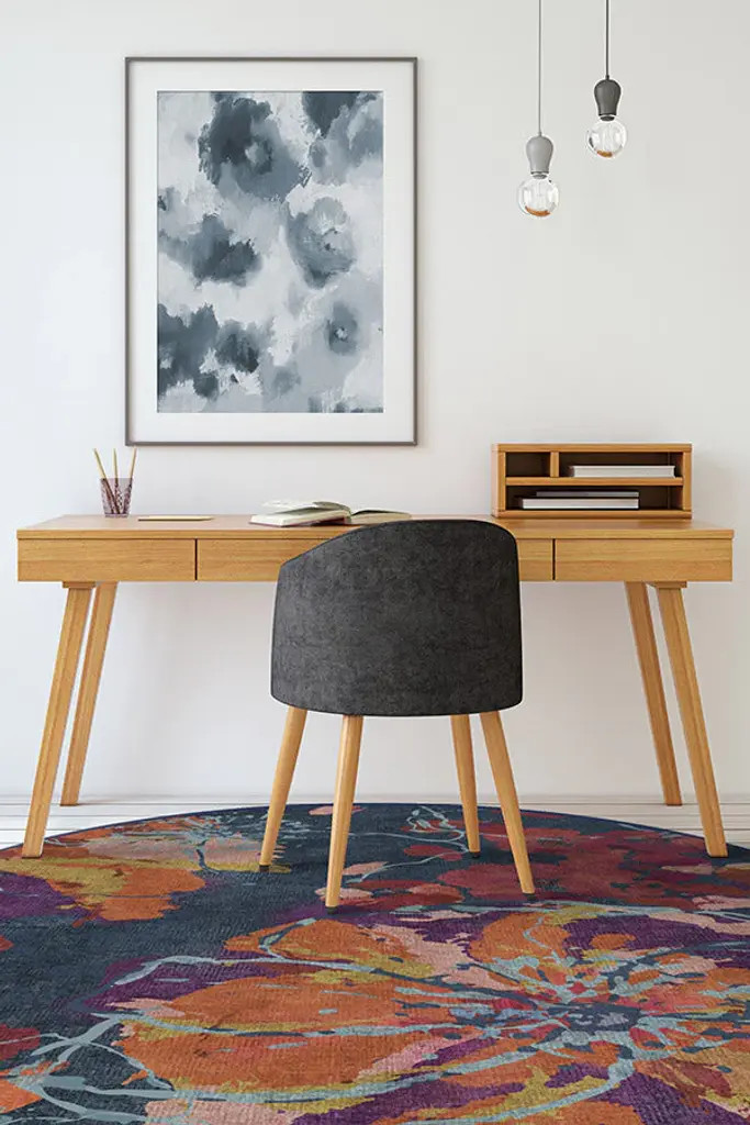 Bring an instant wow-factor to any room by placing our Watercolor Floral Navy rug. Brilliant brushstrokes of color blend together to create a dramatic and abstract floral motif, its navy-hued background adds depth and dimension. Effortless and exciting, this floor decor piece will perfectly suit any urban or suburban style home.