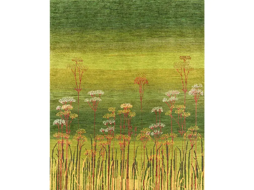 Waterfont Flora 2 is a rectangular wool rug.Zollanvari Super Fine.Zollanvari Studio’s latest collection takes on a new landscape… that of shorelines and the flora that border them. The colours here are wram reds and oranges highlighted with bands of light… cream (undyed wool) defining the points of land that meet the water’s edge and the light of the sky.